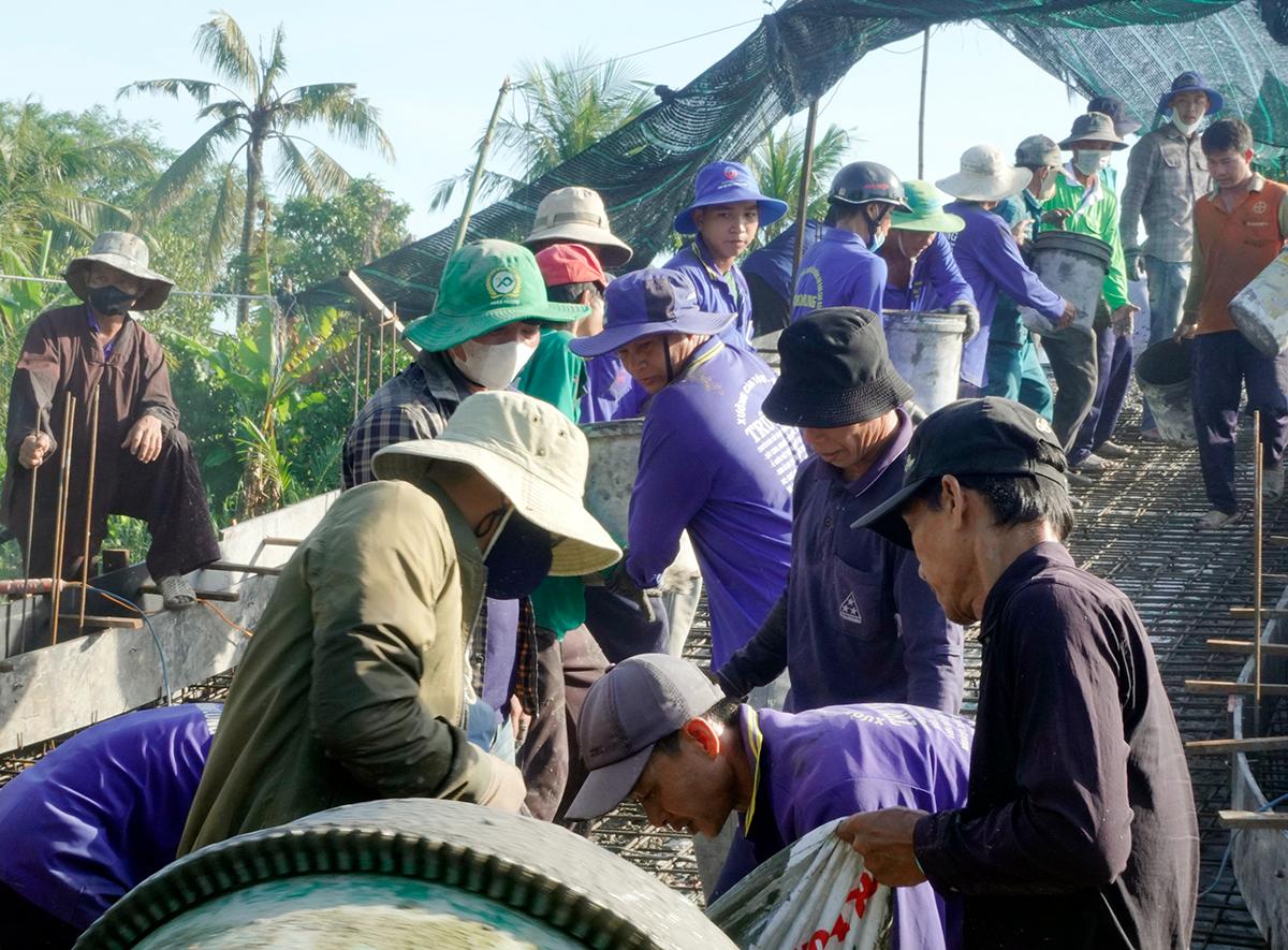 Con đường dẫn vào nơi xây dựng cầu Kênh 14 - Ba Thước (cầu Duy Tâm Đức), ấp Hòa Tân, xã Hòa Hưng hôm khởi công đông vui như ngày hội. Hơn 200 người cùng trộn hồ, chở cát, đổ đá, từ người cao tuổi đến phụ nữ, thanh niên, tất cả đều hăng say. Tiếng cười nói rộn ràng át cả nắng hè. Cầu dài 55m, rộng 3,5m, tải trọng 5 tấn, kinh phí xây dựng 480 triệu đồng, nối liền xã Hòa Hưng (tỉnh An Giang) và xã Vị Thanh 1 (TP. Cần Thơ). Công trình giúp người dân đi lại an toàn, giao thương thuận lợi, mở ra diện mạo mới cho nông thôn vùng ven.