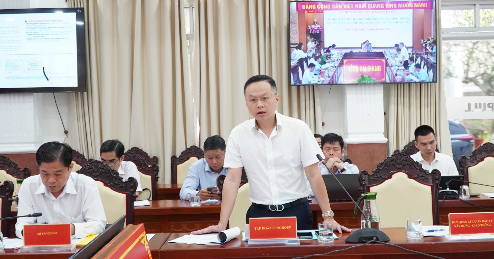 Phát biểu kết luận buổi làm việc, Chủ tịch UBND tỉnh An Giang Hồ Văn Mừng biểu dương tinh thần nỗ lực của các đơn vị trong việc triển khai các dự án phục vụ Hội nghị APEC 2027, nhất là việc chủ động tháo gỡ khó khăn, vướng mắc.