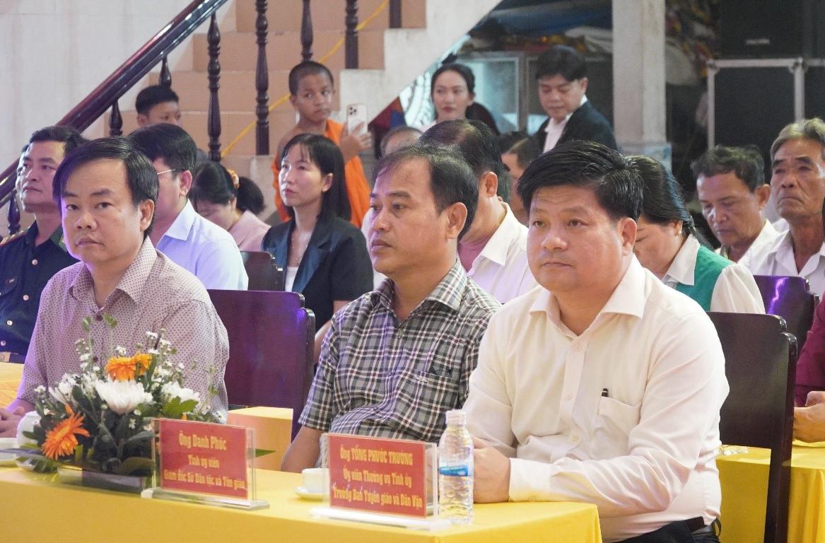 Tham dự buổi họp mặt còn có các đồng chí: Danh Phúc, Tỉnh ủy viên, Giám đốc Sở Dân tộc và Tôn giáo tỉnh An Giang; Nguyễn Văn Cọp, Tỉnh ủy viên, Chủ tịch Hội Nông dân tỉnh An Giang; Hòa thượng Chau Ty, Phó Pháp chủ Hội đồng Chứng minh Giáo hội Phật giáo Việt Nam; Hòa thượng Danh Đổng, Chủ tịch Hội Đoàn kết Sư sãi yêu nước tỉnh An Giang.