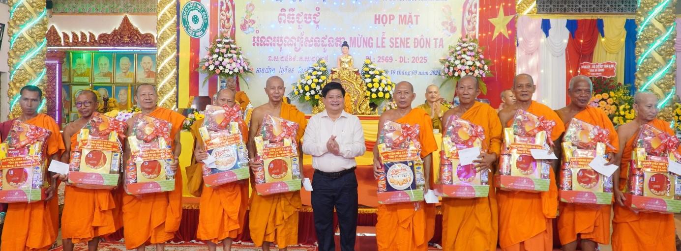Chiều 19/9, Hội Đoàn kết Sư sãi yêu nước tỉnh An Giang tổ chức họp mặt mừng lễ Sene Đôn Ta năm 2025. Ủy viên Ban Thường vụ Tỉnh ủy, Trưởng Ban Tuyên giáo và Dân vận Tỉnh ủy An Giang Tống Phước Trường đến dự.