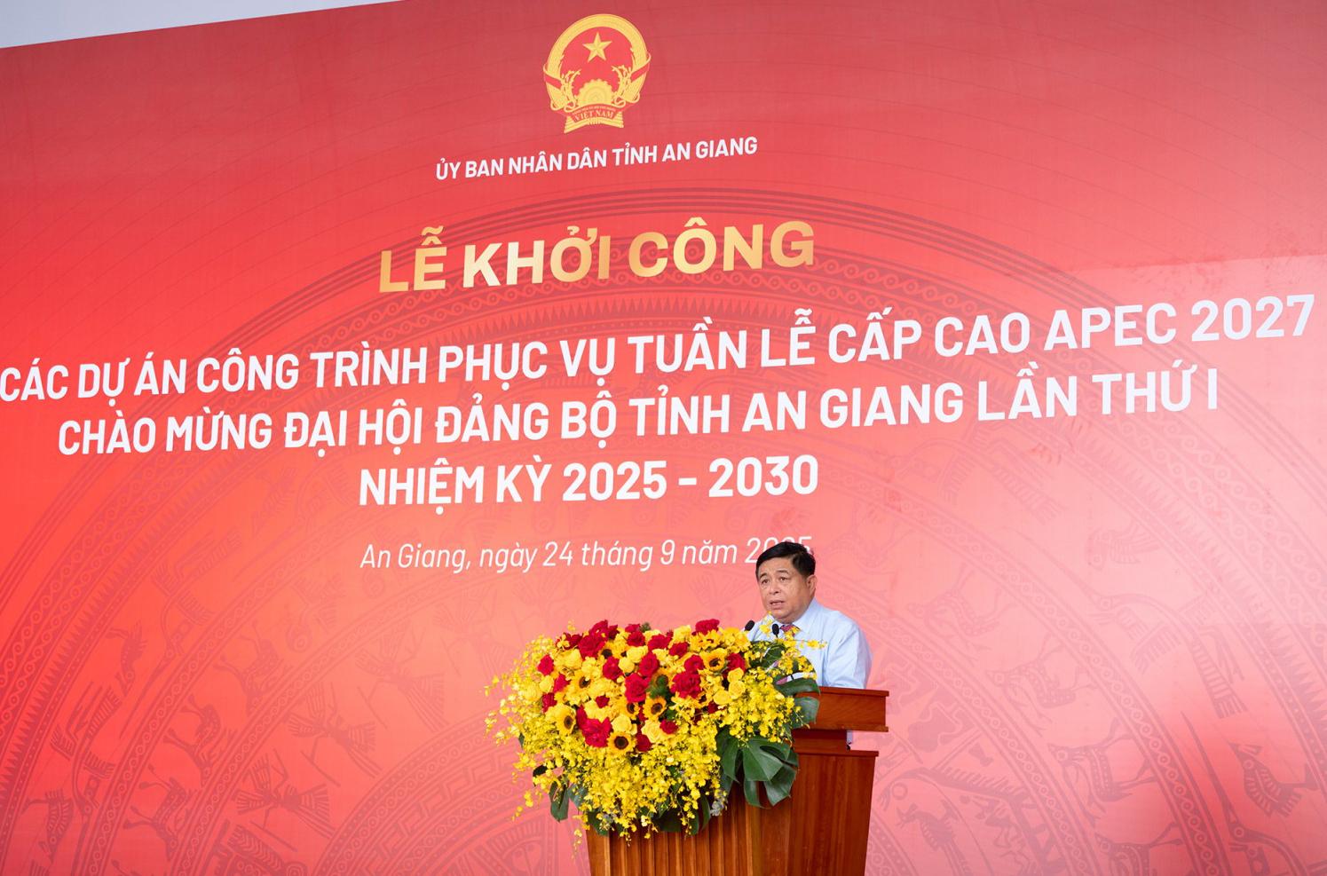 Phát biểu tại buổi lễ, Phó Chủ tịch UBND tỉnh An Giang Ngô Công Thức cho biết: Lễ khởi công, khởi động các dự án, công trình phục vụ Tuần lễ cấp cao APEC 2027, chào mừng Đại hội Đảng bộ tỉnh An Giang lần thứ I, nhiệm kỳ 2025 - 2030, tiến tới Đại hội Đảng toàn quốc lần thứ XIV không chỉ là sự kiện đánh dấu bước khởi đầu cho những công trình trọng điểm, mà còn là minh chứng sống động cho khát vọng vươn mình của tỉnh An Giang, hướng tới một tương lai thịnh vượng, bền vững và hội nhập quốc tế.