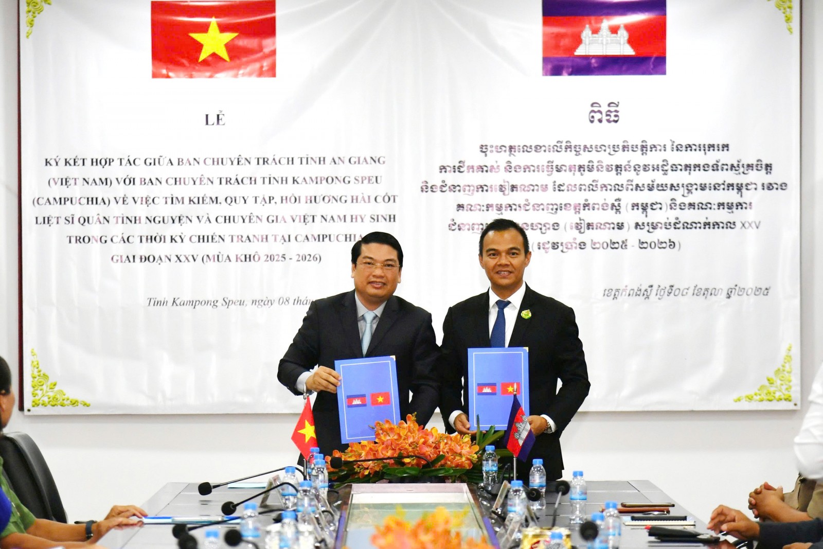 Tại lễ ký kết, hai bên đánh giá cao công tác phối hợp thực hiện Hiệp định của Chính phủ Việt Nam và Chính phủ Hoàng gia Campuchia và các văn bản hợp tác của hai tỉnh An Giang - Kampong Speu về việc hợp tác tìm kiếm, quy tập, hồi hương hài cốt liệt sĩ quân tình nguyện và chuyên gia Việt Nam hy sinh trong các thời kỳ chiến tranh tại Campuchia trên địa bàn tỉnh Kampong Speu đã đạt nhiều kết quả, góp phần chia sẻ nỗi đau, mất mát không gì bù đắp được của gia đình thân nhân liệt sĩ.