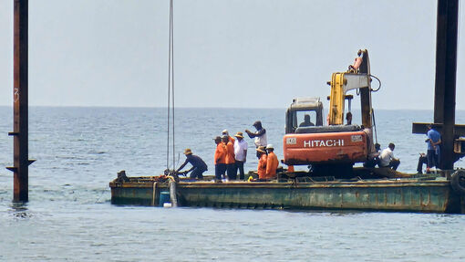 Ngành điện tỉnh An Giang cùng các ngành, lực lượng chức năng trục vớt cáp ngầm cách bờ biển phường Tô Châu khoảng 200m.
