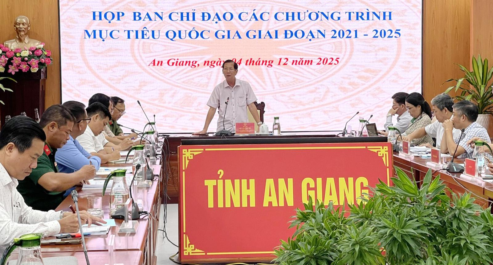 Sáng 4/12, Phó Chủ tịch UBND tỉnh An Giang Lê Văn Phước chủ trì họp Ban Chỉ đạo các Chương trình mục tiêu quốc gia giai đoạn 2021 - 2025, để đánh giá kết quả thực hiện trong 11 tháng đầu năm và định hướng nhiệm vụ, giải pháp đến cuối năm 2025.