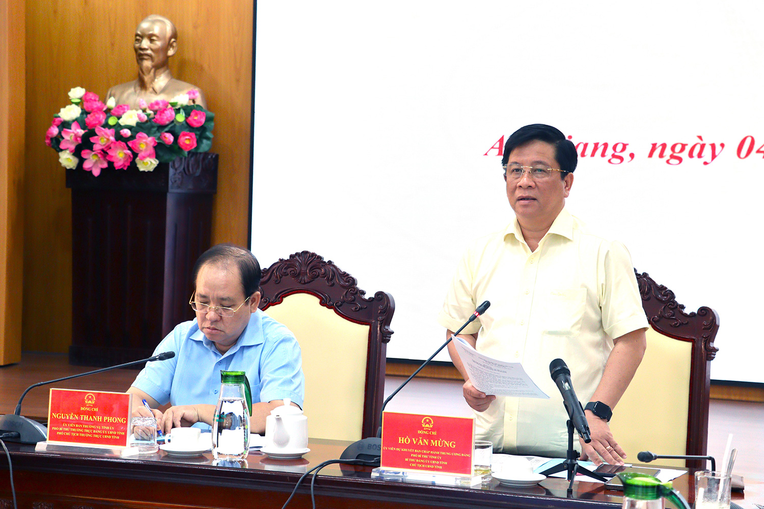 - Ngày 4/11, Ủy viên dự khuyết Ban Chấp hành Trung ương Đảng, Phó Bí thư Tỉnh ủy, Chủ tịch UBND tỉnh An Giang Hồ Văn Mừng chủ trì cuộc họp về tiến độ giải ngân vốn đầu tư công 10 tháng năm 2025 và giải pháp đẩy mạnh giải ngân vốn đầu tư công các tháng còn lại của năm 2025. Cùng tham dự có các Phó Chủ tịch UBND tỉnh: Nguyễn Thanh Phong, Lê Văn Phước, Ngô Công Thức, Nguyễn Thị Minh Thúy, Lê Trung Hồ.