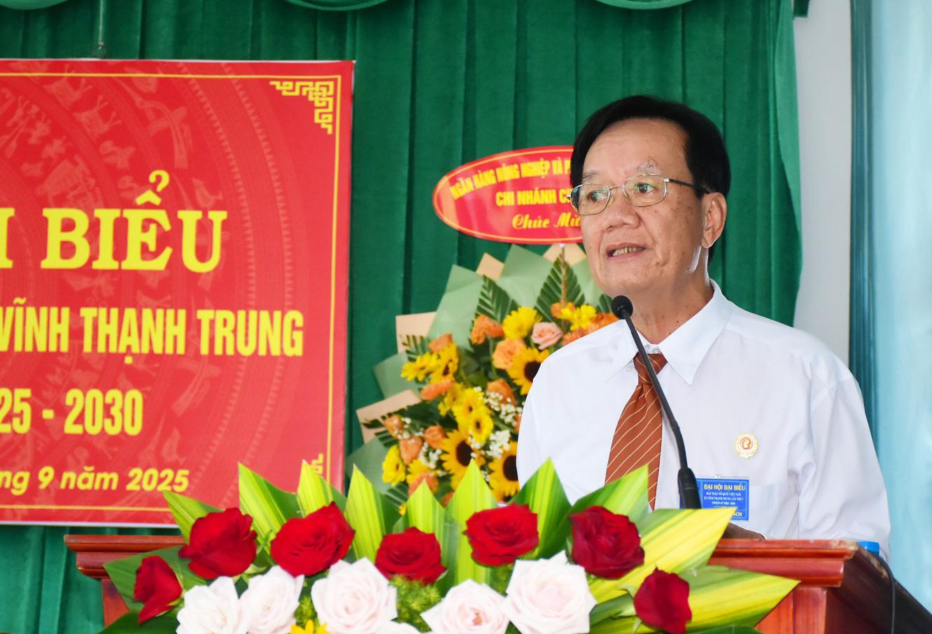 Phát biểu tại Đại hội, Chủ tịch Hội Cựu chiến binh tỉnh Bùi Vũ Tấn đề nghị UBMTTQVN xã Vĩnh Thạnh Trung hướng mạnh hoạt động về cơ sở, phát huy vai trò của người có uy tín, các chức sắc tôn giáo, cán bộ Mặt trận trong xây dựng, phát huy khối đoàn kết dân tộc. Đẩy mạnh các phong trào thi đua yêu nước, chương trình xây dựng nông thôn mới, công tác an sinh xã hội, bảo vệ môi trường và giữ gìn an ninh trật tự tại địa phương.
