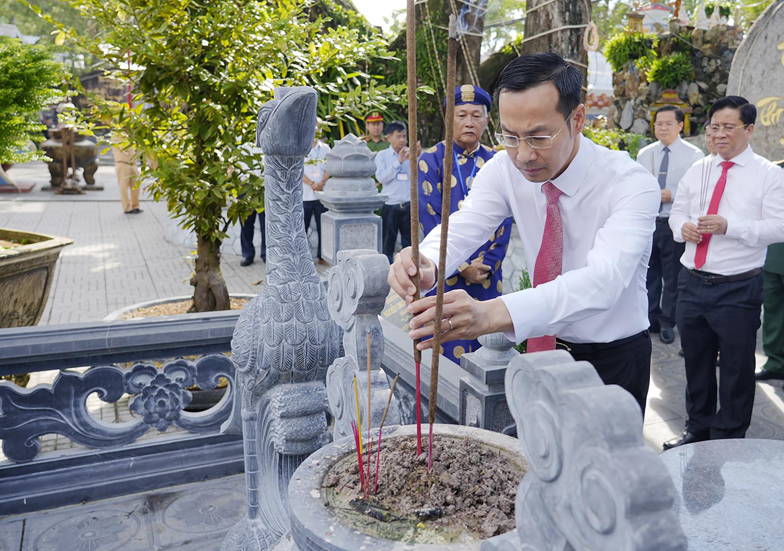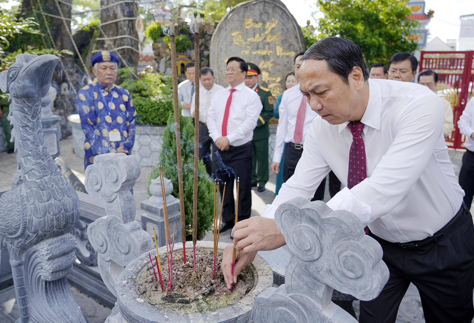 Ủy viên Ban Chấp hành Trung ương Đảng, Bí thư Tỉnh ủy An Giang Nguyễn Tiến Hải thắp hương mộ Anh hùng dân tộc Nguyễn Trung Trực.