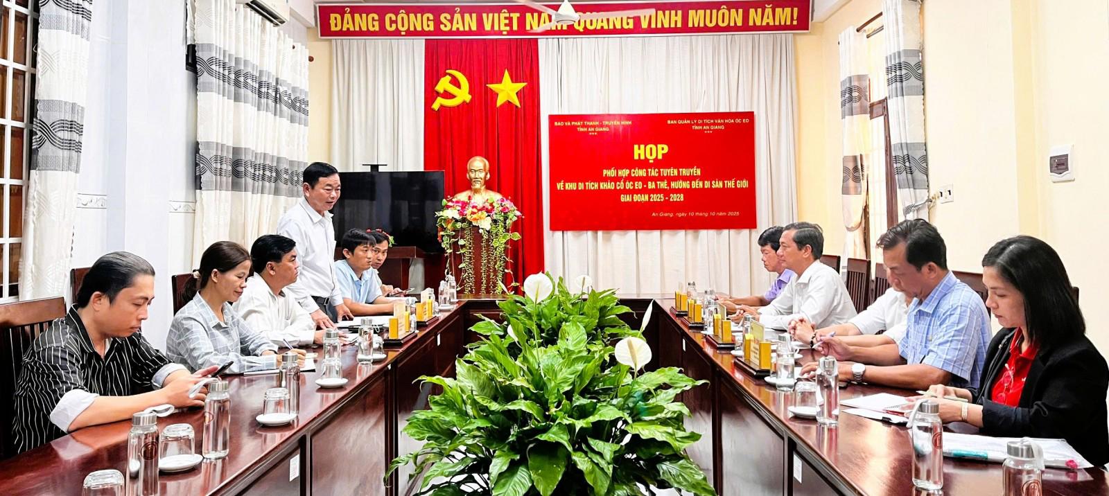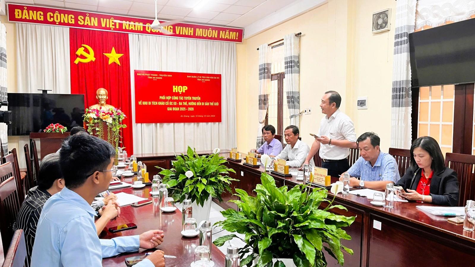 Tại buổi làm việc, ông Lê Văn Chuyển cho biết, Ban Biên tập Báo và Phát thanh - Truyền hình An Giang thống nhất tiếp tục duy trì và nâng cấp nội dung tuyên truyền thành một chuyên mục lớn có tên gọi hiện tại là “Hướng đến Di sản Văn hóa Thế giới”. Mục tiêu là xây dựng chuỗi hệ thống tuyên truyền hoàn chỉnh, logic, giúp công chúng hiểu đúng và đầy đủ về giá trị Óc Eo. Các bên liên quan phải nhanh chóng phác thảo nội dung chi tiết để lồng ghép vào kế hoạch chung, trình duyệt, việc này đảm bảo cơ sở để đề xuất kinh phí thực hiện.