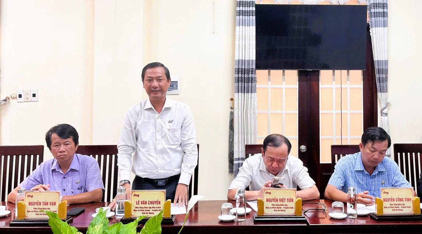 Phó Tổng Biên tập phụ trách Báo và Phát thanh, Truyền hình An Giang Lê Văn Chuyển phát biểu tại buổi làm việc.
