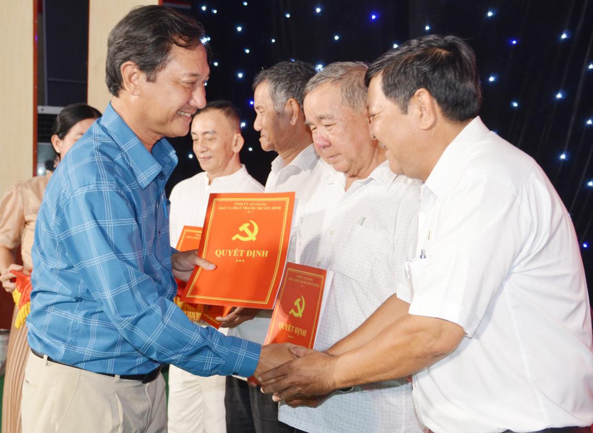 Phó Tổng Biên tập Báo và Phát thanh - Truyền hình tỉnh An Giang Nguyễn Xuân Bằng trao quyết định nghỉ hưu, nghỉ công tác cho các viên chức.