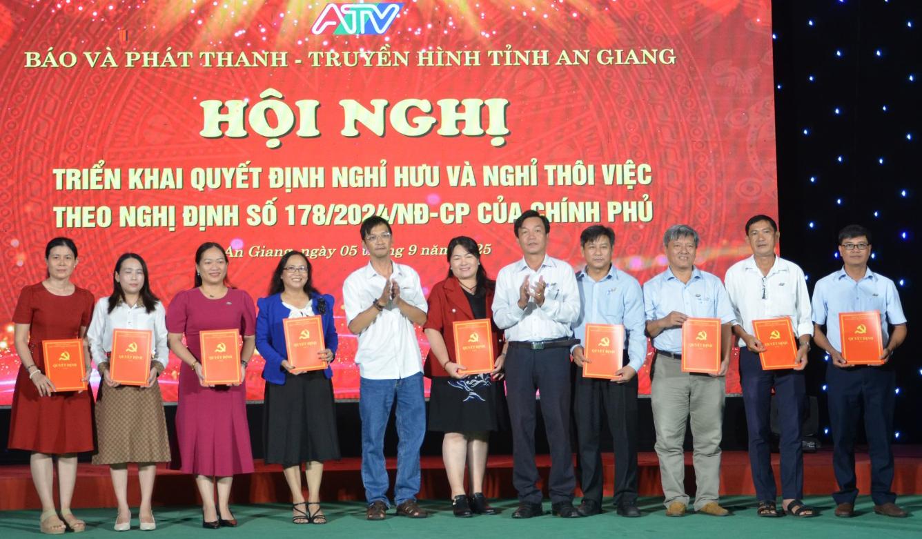 Chiều 5/9, Ban Biên tập Báo và Phát thanh - Truyền hình tỉnh An Giang tổ chức Hội nghị triển khai quyết định nghỉ hưu và nghỉ thôi việc theo Nghị định số 178/2024/NĐ-CP và Nghị định số 67/2025/NĐ-CP của Chính phủ cho viên chức và người lao động của đơn vị.