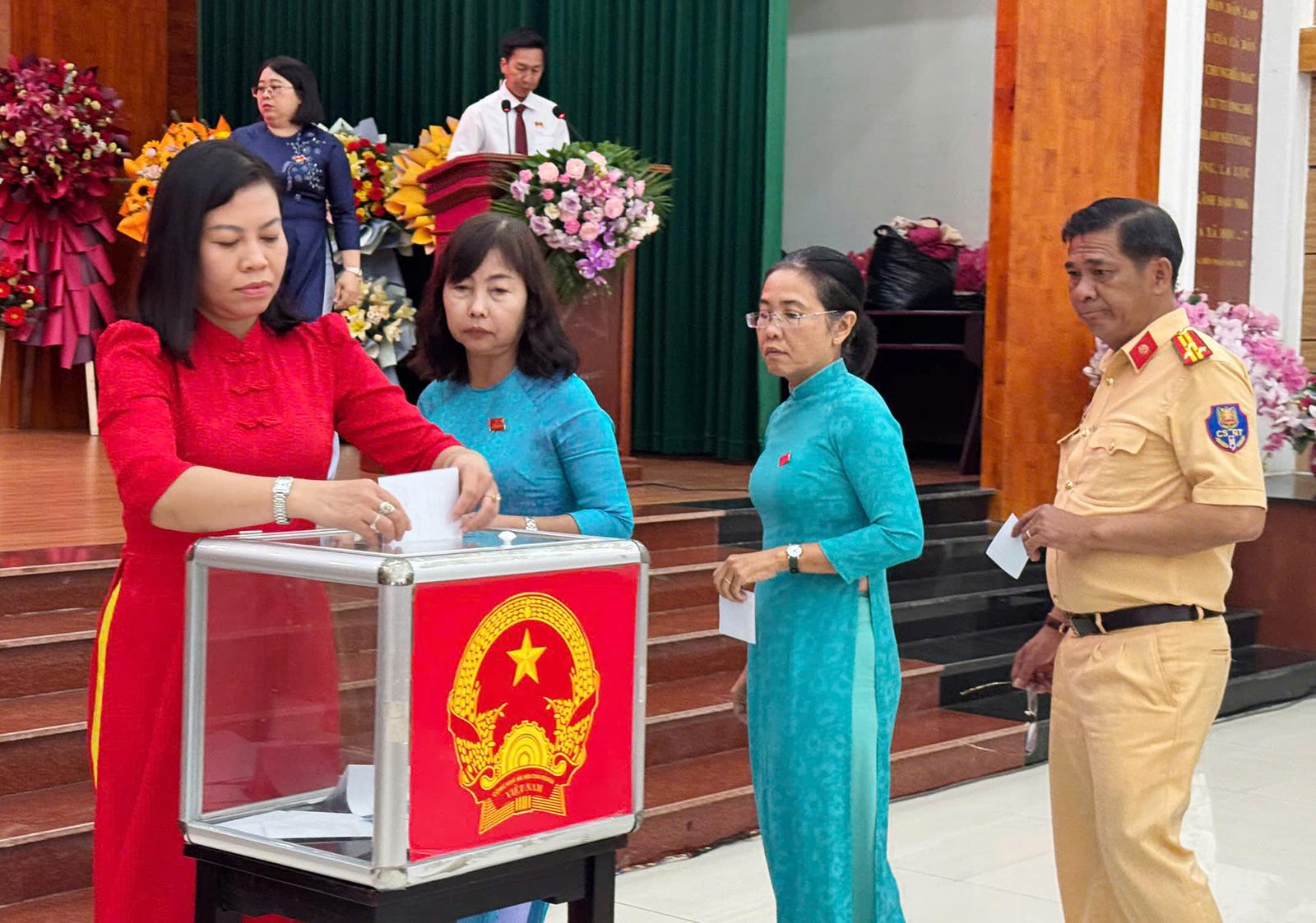 Đại biểu bỏ phiếu bầu cho bà Nguyễn Thị Kim Loan.