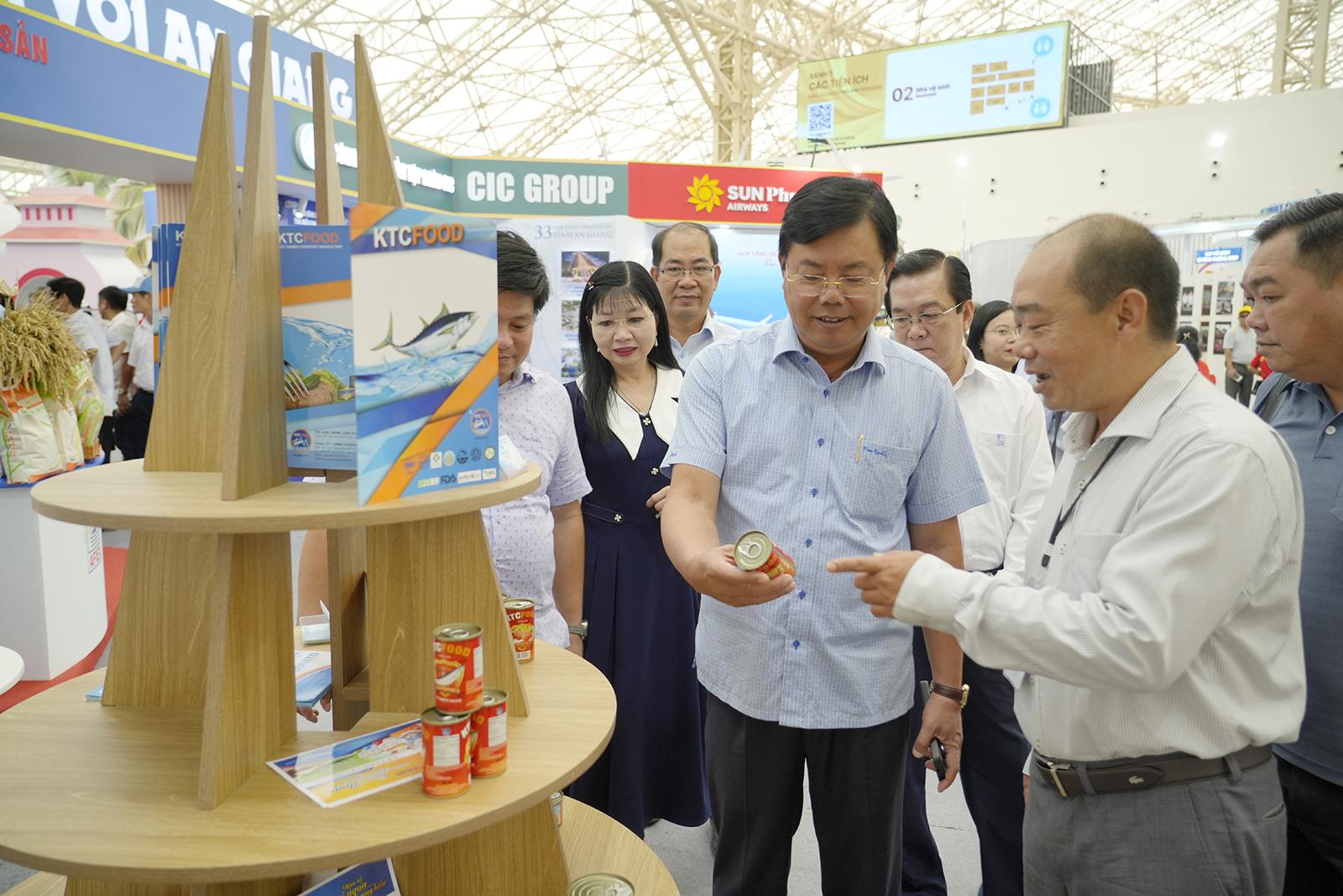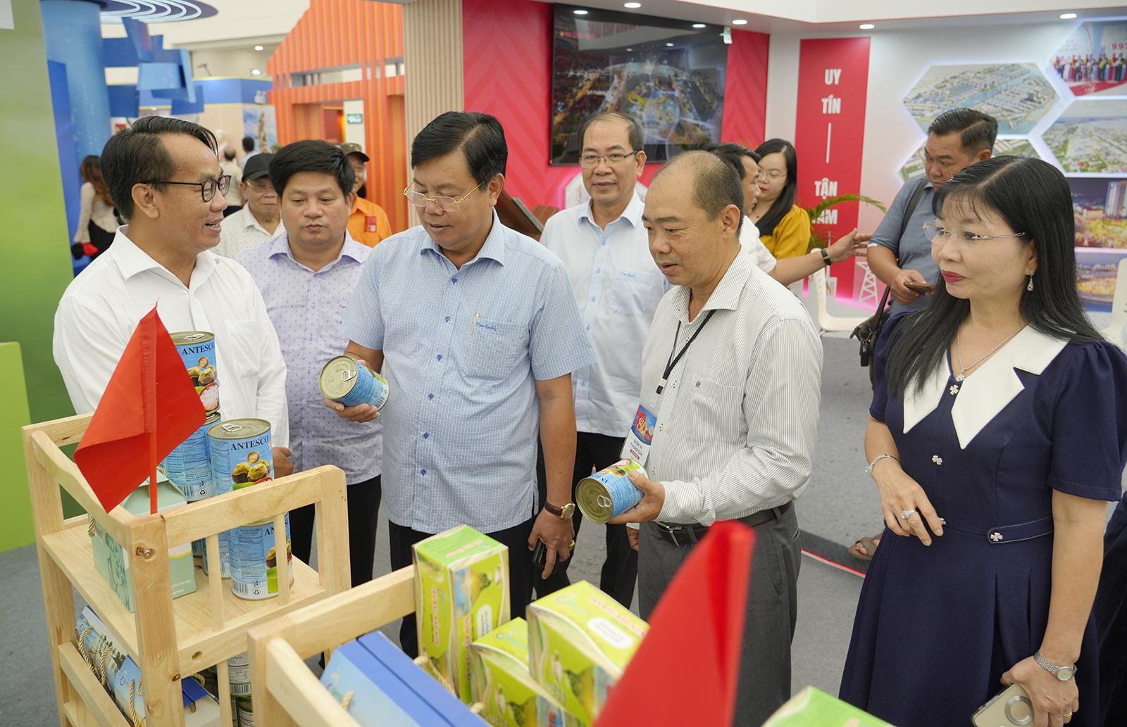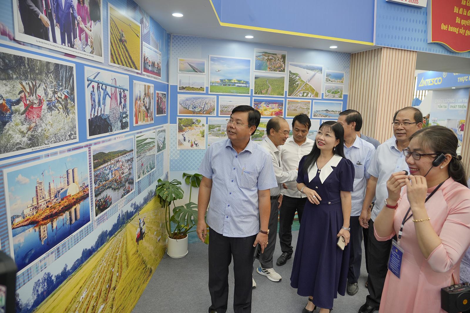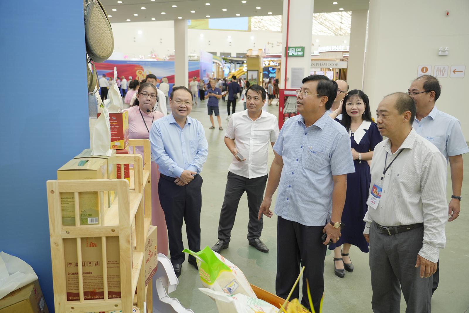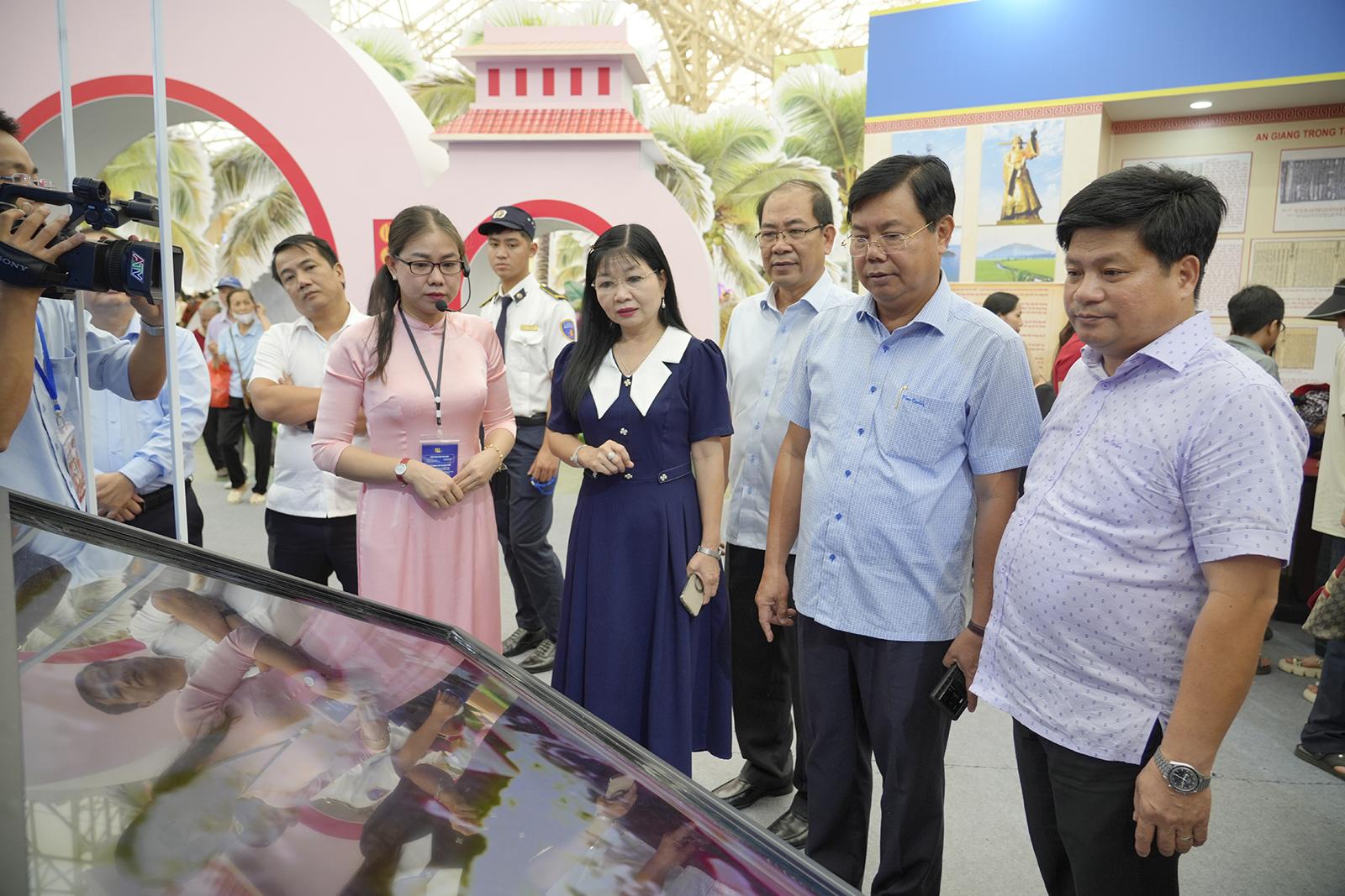 Bí thư Tỉnh ủy An Giang Nguyễn Tiến Hải, cùng đoàn công tác thăm gian trưng bày của tỉnh An Giang tại Triển lãm thành tựu đất nước.