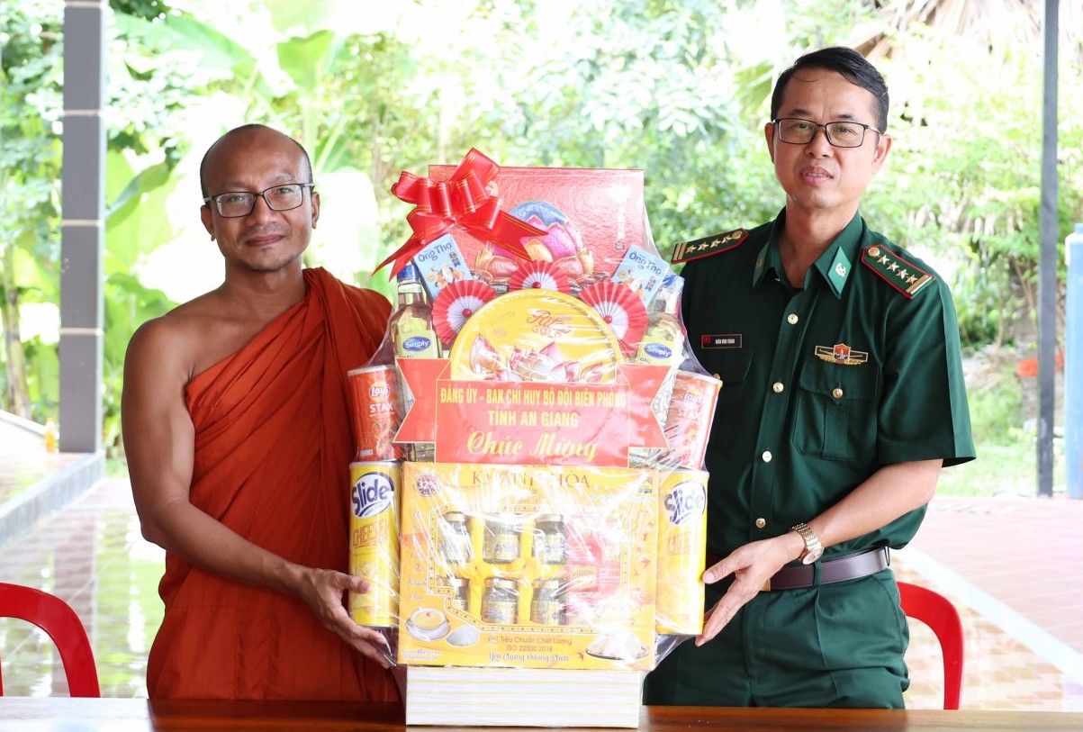 Bày tỏ sự cảm kích trước tình cảm và sự quan tâm của đoàn công tác Bộ đội Biên phòng tỉnh An Giang, các vị trụ trì, sư sãi, người có uy tín cùng cán bộ Sở Dân tộc và Tôn giáo tỉnh An Giang khẳng định tiếp tục nêu gương, vận động phật tử sống tốt đời, đẹp đạo, đồng thời vận động đồng bào Khmer chấp hành nghiêm chủ trương, đường lối của Đảng, chính sách, pháp luật của Nhà nước; đồng hành cùng cán bộ, chiến sĩ Biên phòng trong sự nghiệp xây dựng và bảo vệ Tổ quốc.