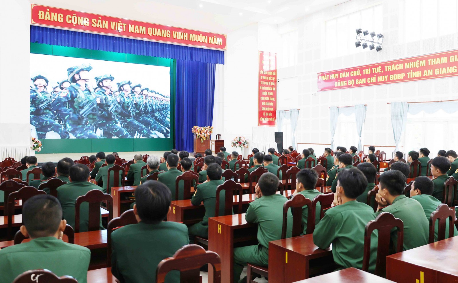 Cán bộ, chiến sĩ Ban Chỉ huy Bộ đội Biên phòng tỉnh An Giang xem chương trình Lễ kỷ niệm, diễu binh, diễu hành 80 năm Cách mạng Tháng Tám thành công và Quốc khánh 2/9.