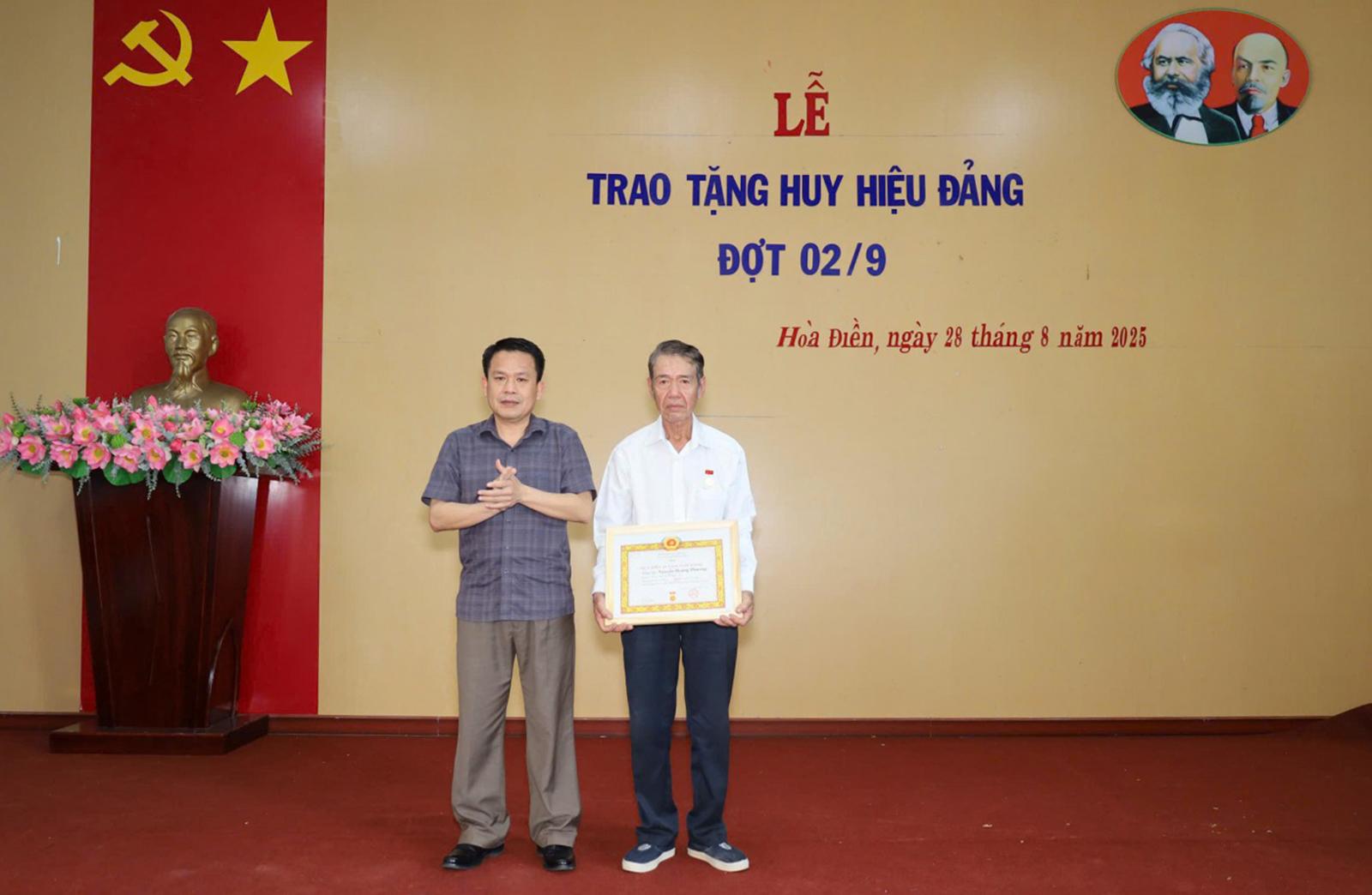 Đợt 2/9, Đảng bộ xã Hòa Điền có 1 đảng viên nhận Huy hiệu 30 năm tuổi Đảng, 1 đảng viên nhận Huy hiệu 40 năm tuổi Đảng và 1 đảng viên nhận Huy hiệu 45 năm tuổi Đảng. Các đảng viên đang sinh hoạt tại Chi bộ ấp Lung Lớn, Chi bộ ấp Kiên Sơn và Chi bộ các Cơ quan Đảng trực thuộc Đảng ủy xã Hòa Điền.