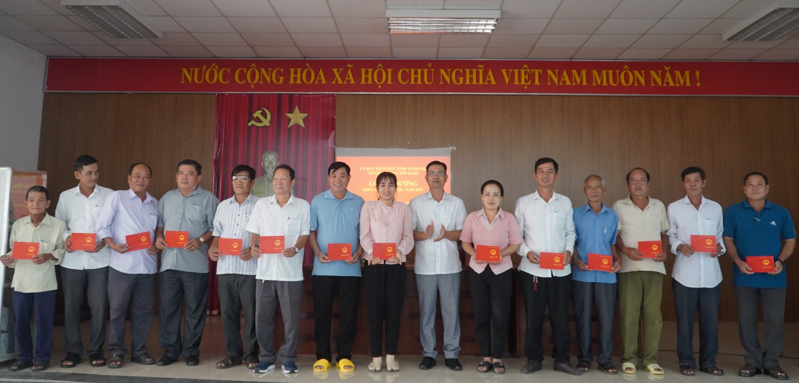 Các học viên xã Thạnh Lộc được cấp chứng chỉ hoàn thành khóa bồi dưỡng kiến thức dân tộc.