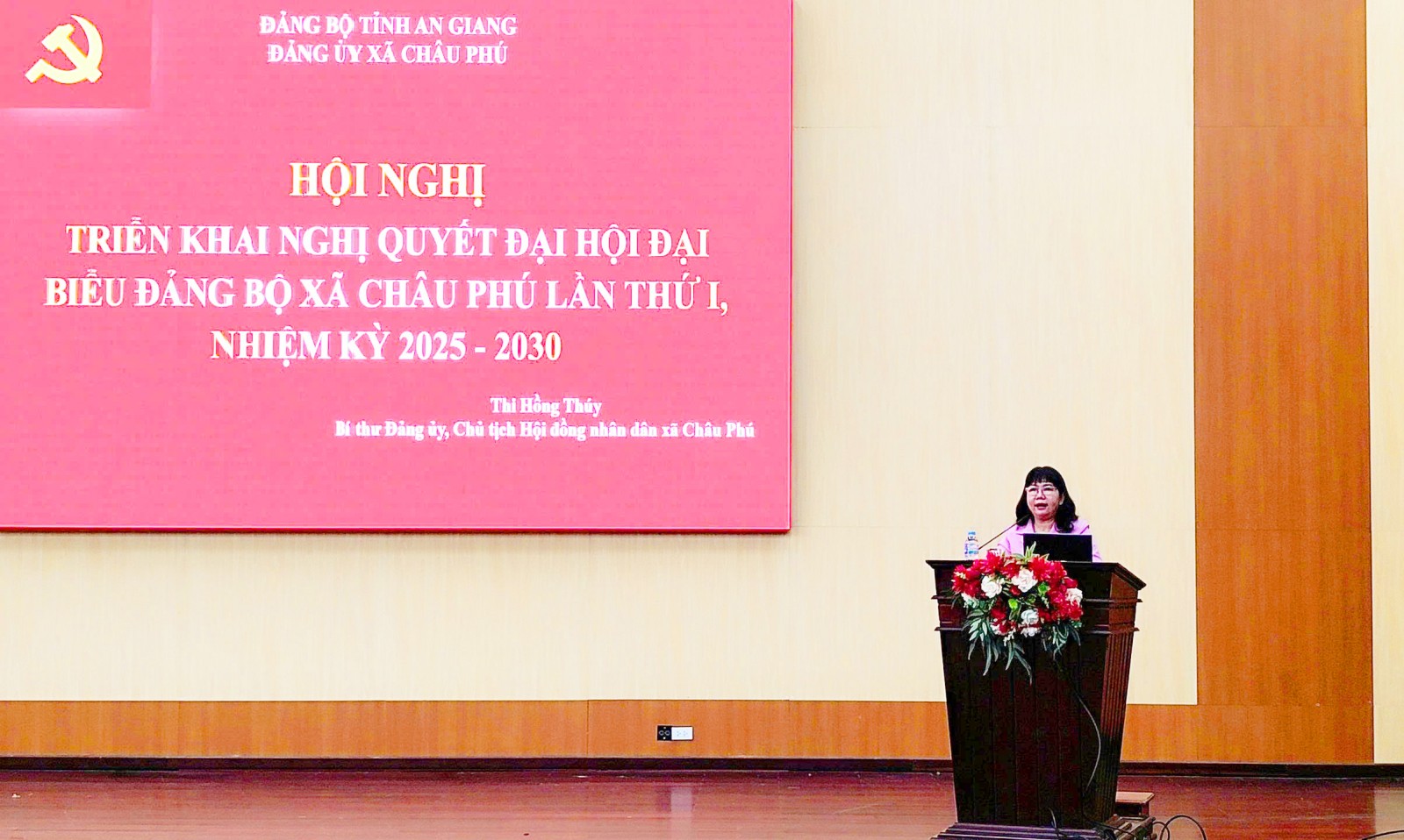 Ngày 27/9, Ban Thường vụ Đảng ủy xã Châu Phú (tỉnh An Giang) tổ chức Hội nghị quán triệt Nghị quyết Đại hội đại biểu Đảng bộ xã lần thứ I, nhiệm kỳ 2025 - 2030, cùng chương trình hành động và các nghị quyết chuyên đề của Ban Chấp hành Đảng bộ xã. Bí thư Đảng ủy, Chủ tịch HĐND xã Thi Hồng Thúy chủ trì và quán triệt nghị quyết.