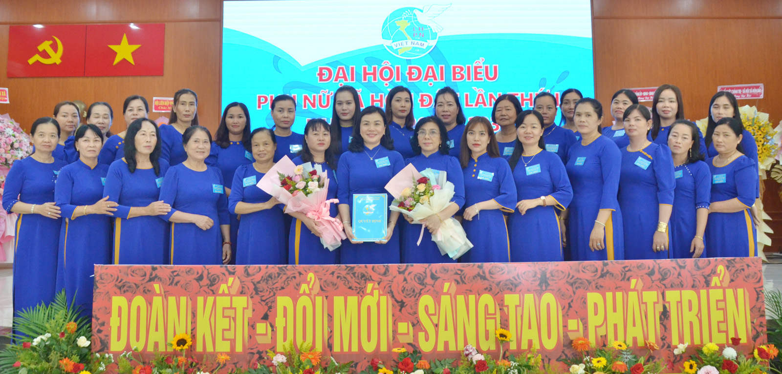 Lãnh đạo Hội Liên hiệp Phụ nữ tỉnh An Giang, Đảng ủy xã Hòn Đất trao quyết định, tặng hoa chúc mừng Ban Chấp hành Hội Liên hiệp Phụ nữ xã Hòn Đất, nhiệm kỳ 2025 - 2030.