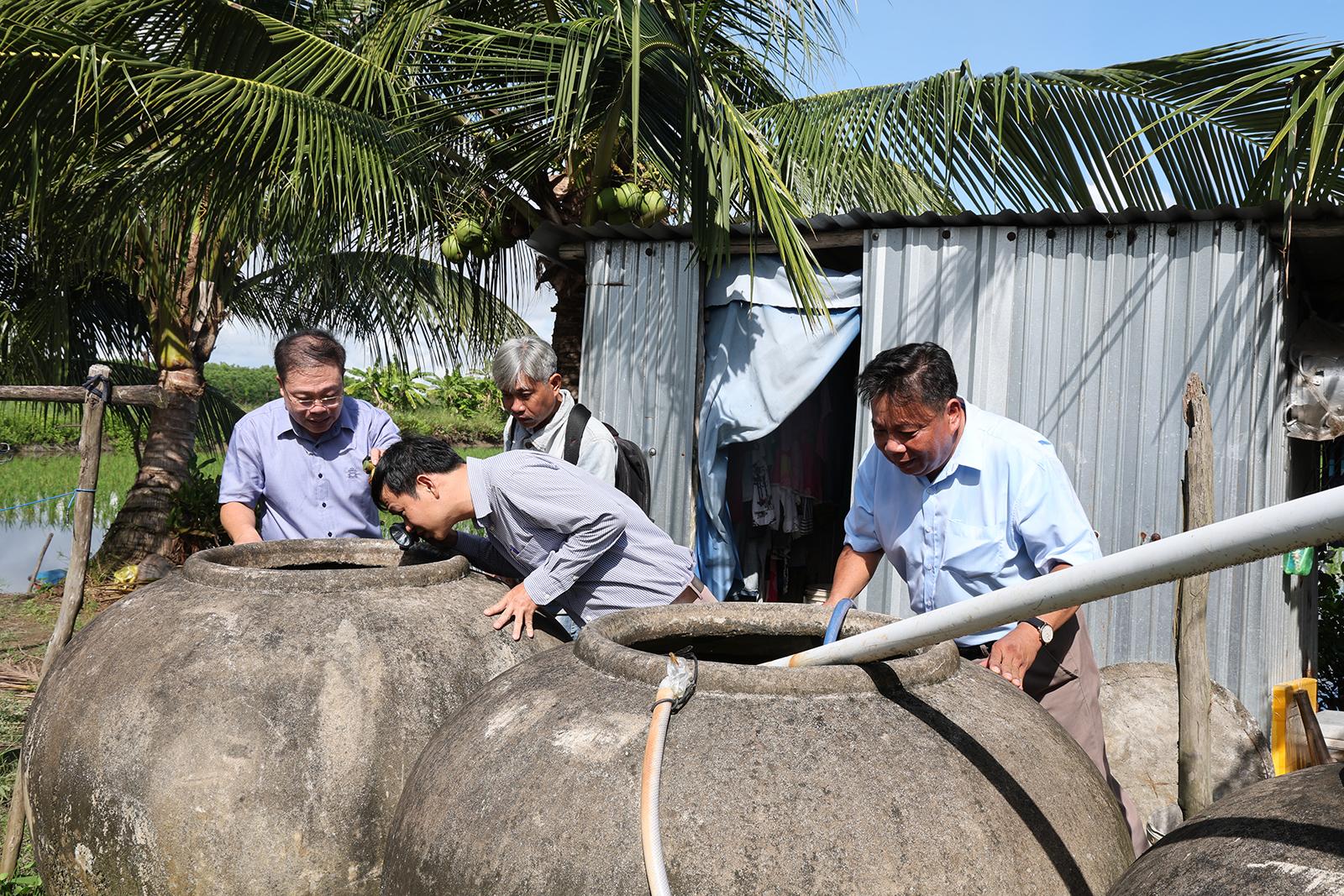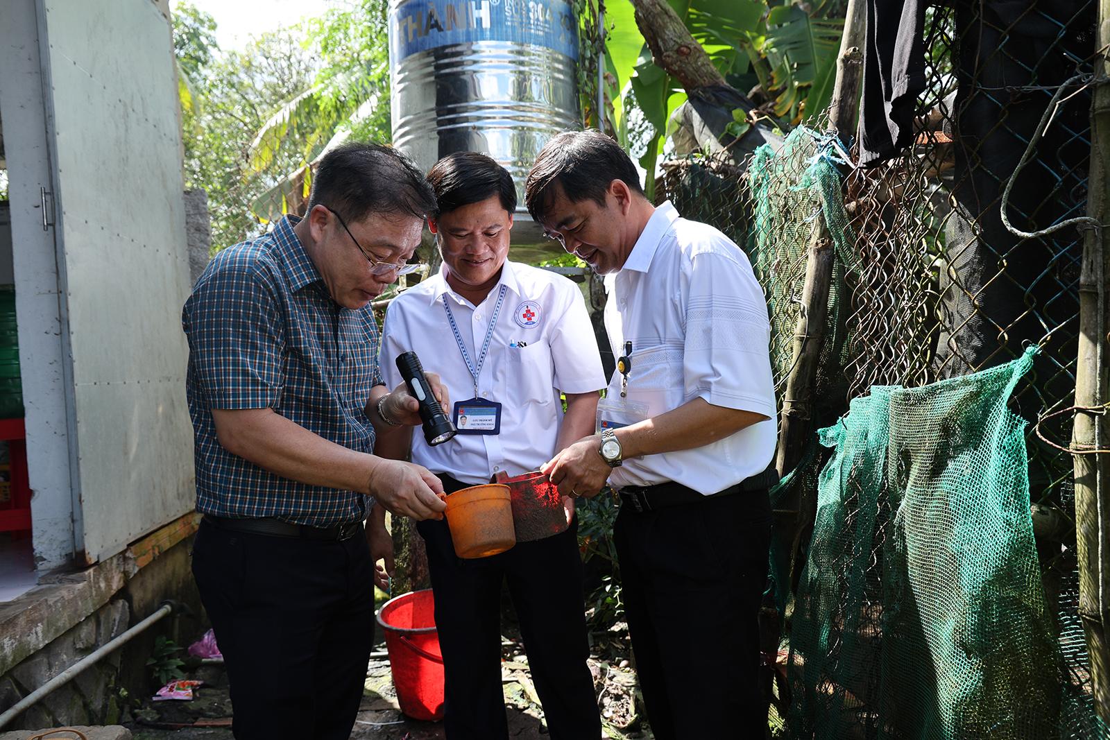 Kiểm tra lăng quăng tại một gia đình xã Châu Thành. Ảnh: HỒNG NGÁT