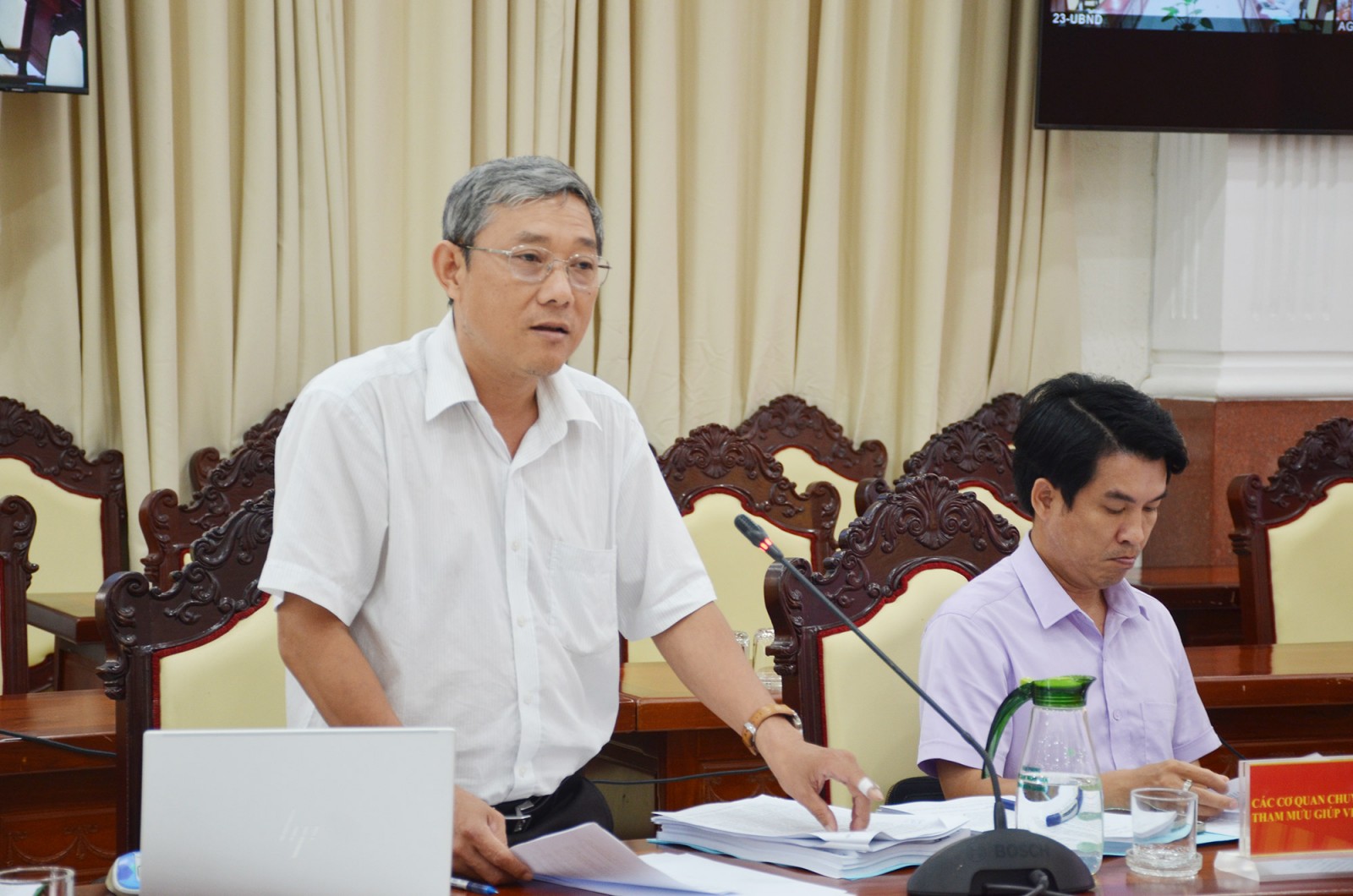 Phó Giám đốc Sở Nông nghiệp và Môi trường tỉnh An Giang Hồ Thanh Bình góp ý báo cáo chính trị các xã, phường.