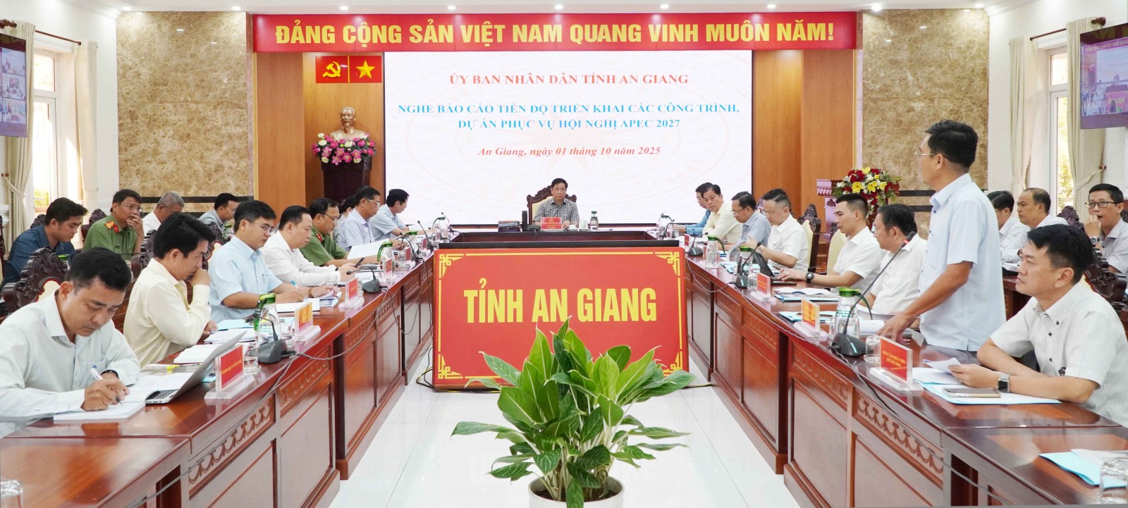 Phát biểu tại buổi làm việc, Chủ tịch UBND tỉnh An Giang Hồ Văn Mừng đánh giá cao nỗ lực của các cơ quan, đơn vị, địa phương trong thực hiện triển khai các công trình, dự án phục vụ Hội nghị APEC 2027. Thời gian qua, tỉnh đã chủ động nguồn cung vật liệu để phục vụ các dự án APEC; đặc khu Phú Quốc đã tích cực triển khai giải phóng mặt bằng...