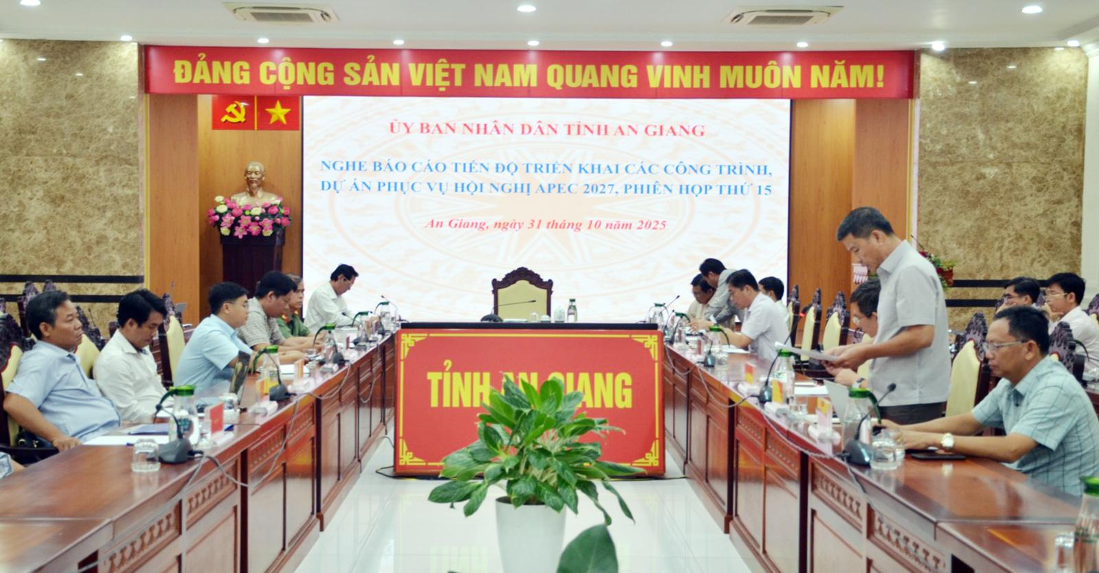 Phát biểu chỉ đạo tại cuộc họp, Chủ tịch UBND tỉnh An Giang Hồ Văn Mừng đánh giá tiến độ các công trình dự án APEC 2027 cơ bản đảm bảo. Các sở, ngành, đặc khu Phú Quốc thực hiện nghiêm túc sự chỉ đạo của UBND tỉnh.