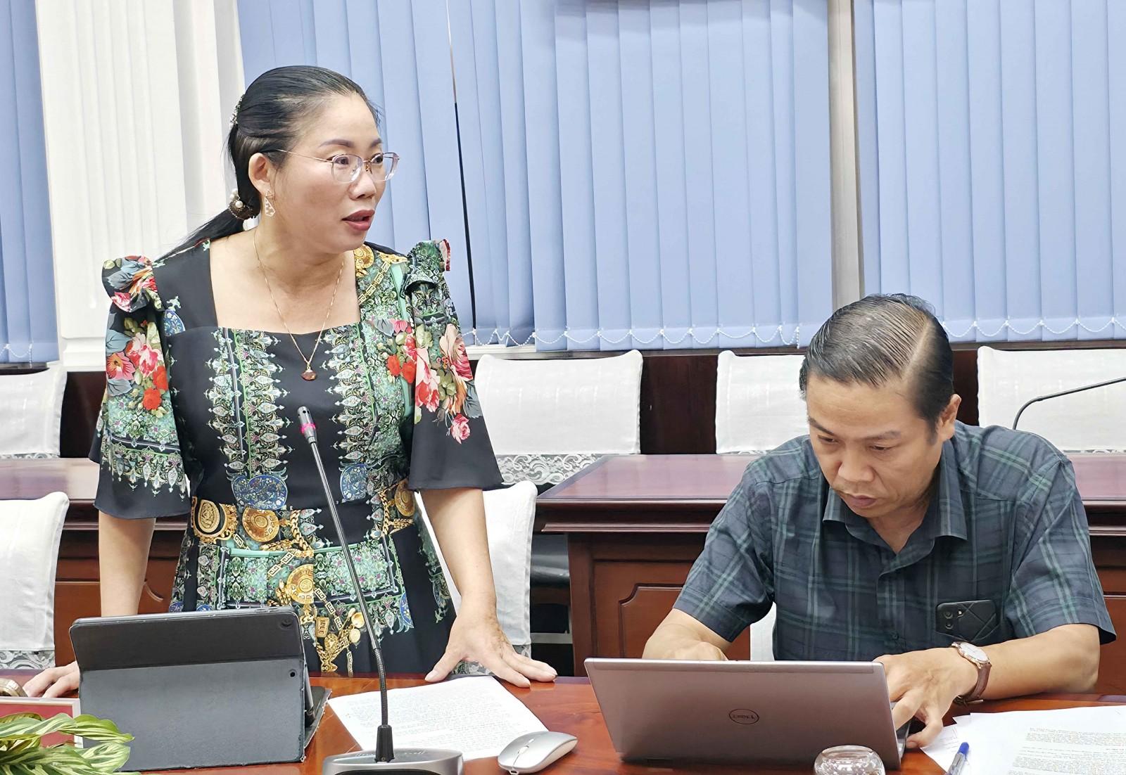 Phó Giám đốc Sở Văn hóa và Thể thao tỉnh An Giang Nguyễn Diệp Mai phát biểu tại cuộc họp.