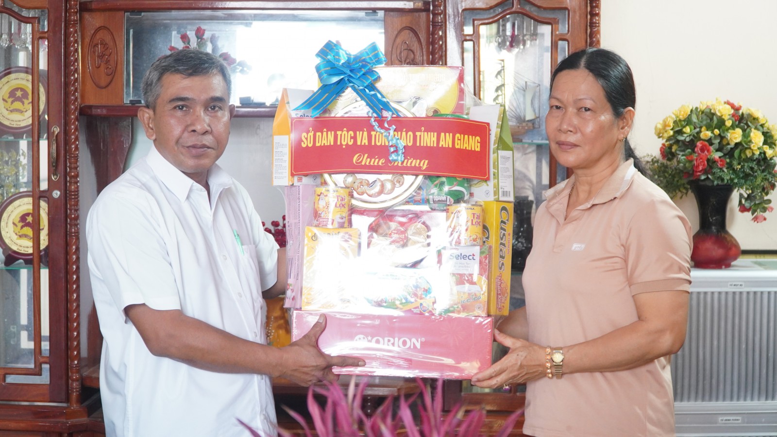 Phó Giám đốc Sở Dân Tộc và Tôn giáo tỉnh An Giang Danh Lắm (bên trái) tặng quà Giáo xứ Hà Tiên.