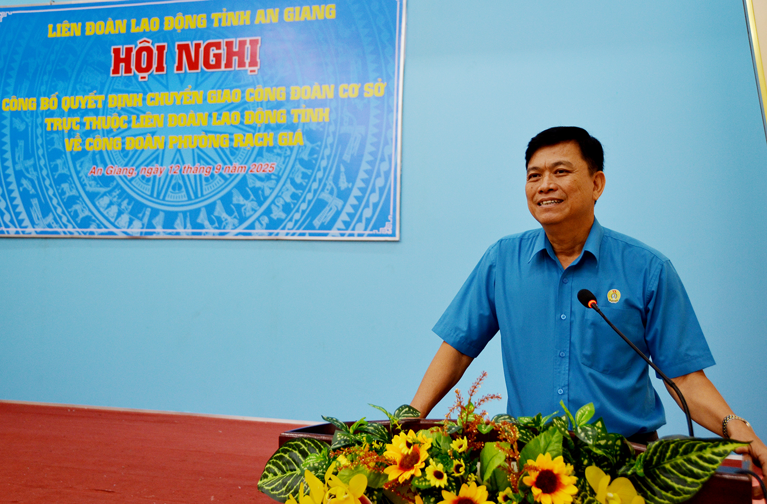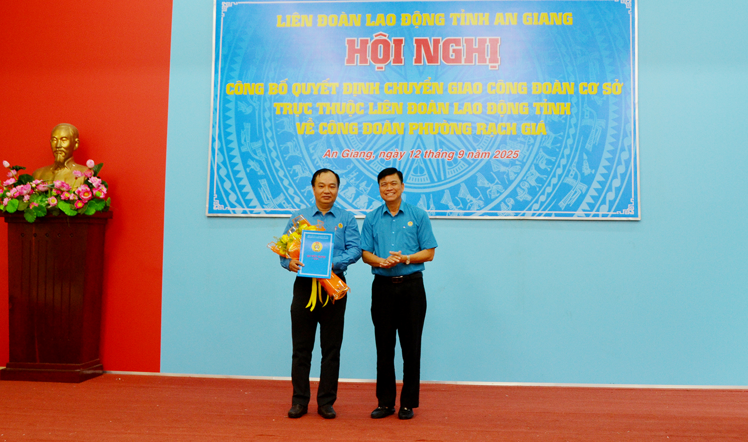 Tại hội nghị, Ban Thường vụ Liên đoàn Lao động tỉnh An Giang đã công bố quyết định chuyển giao 116 công đoàn cơ sở, với 7.349 đoàn viên trực thuộc Liên đoàn Lao động tỉnh An Giang về Công đoàn phường Rạch Giá quản lý, kể từ ngày 27/8/2025.