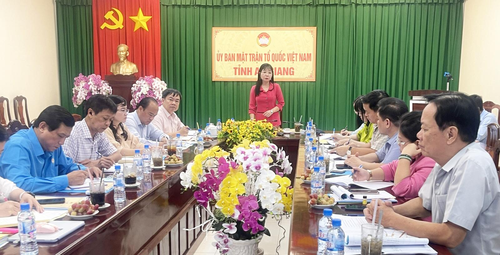 Đồng chí Trần Thị Thanh Hương, Ủy viên Ủy ban Trung ương MTTQ Việt Nam, Phó Bí thư Tỉnh ủy, Chủ tịch Ủy ban MTTQ Việt Nam tỉnh An Giang chủ trì cuộc họp.