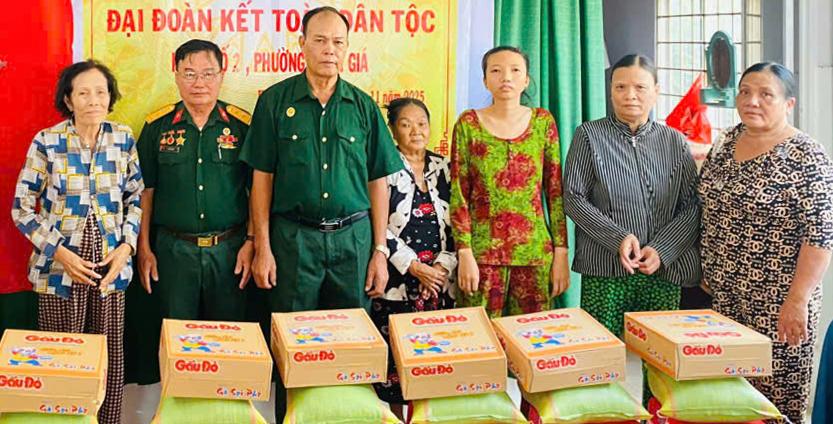 Ban Công tác Mặt trận, lãnh đạo khu phố 2 tặng quà gia đình chính sách trong ngày hội đại đoàn kết toàn dân tộc. Ảnh: MỘC TRÀ