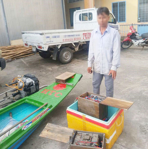 Trước đó, lúc 11 giờ, ngày 8/8, trong quá trình tuần tra tại khu vực ấp Danh Coi, xã An Minh, Công an xã An Minh phát hiện Nguyễn Vũ Phước (sinh năm 1982, cư trú ấp Thanh Hùng, xã An Minh) đang trực tiếp sử dụng bộ kích điện để đánh bắt thủy sản trái phép.