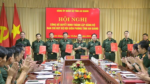 Tại hội nghị, Đảng ủy Quân sự tỉnh An Giang công bố và trao quyết định thành lập Đảng bộ Ban Chỉ huy Bộ đội Biên phòng tỉnh; quyết định chỉ định Ban Chấp hành Đảng bộ, Ban Thường vụ, Bí thư, Phó Bí thư Đảng ủy, Ủy viên Ủy ban Kiểm tra, Chủ nhiệm Ủy ban Kiểm tra Đảng ủy Ban Chỉ huy Bộ đội Biên phòng tỉnh nhiệm kỳ 2025-2030.