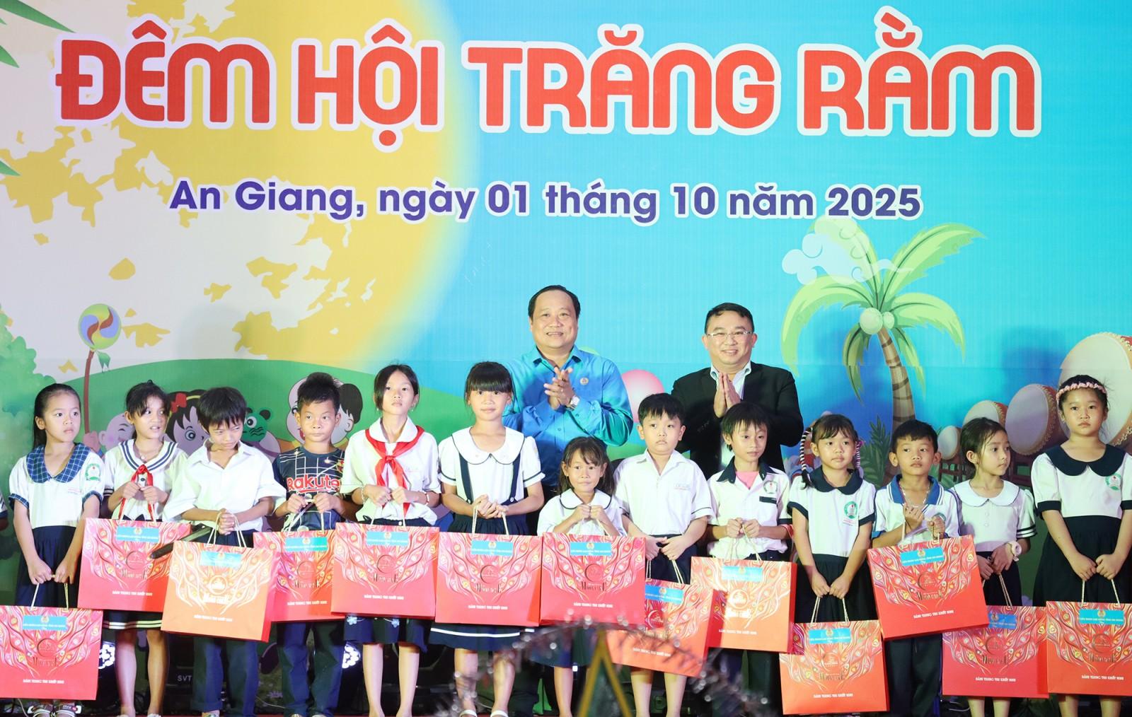 Tối 1/10, Liên đoàn Lao động tỉnh An Giang, Tỉnh đoàn An Giang, Sở Y tế tỉnh An Giang phối hợp tổ chức chương trình “Đêm hội trăng rằm” năm 2025 cho 200 con em đoàn viên, người lao động có hoàn cảnh khó khăn ở phường Rạch Giá.