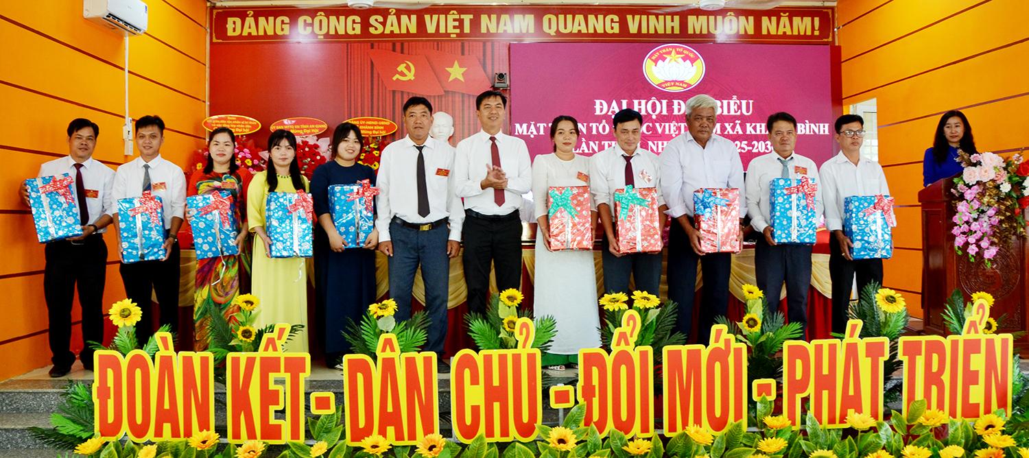 Phát biểu tại đại hội, thay mặt Ban Thường trực Ủy ban Mặt trận Tổ quốc Việt Nam tỉnh, Phó Chủ tịch Ủy ban Mặt trận Tổ quốc Việt Nam tỉnh, Bí thư Tỉnh đoàn An Giang Phan Duy Bằng biểu dương, ghi nhận những thành tích mà Mặt trận Tổ quốc Việt Nam xã Khánh Bình đã đạt được trong thời gian qua. Đồng thời đề nghị, Mặt trận Tổ quốc Việt Nam xã Khánh Bình trong thời gian tới thường xuyên bám sát, cụ thể hóa và triển khai kịp thời các chỉ đạo của Trung ương, của tỉnh và Đảng bộ xã, thể hiện rõ tinh thần Mặt trận luôn đồng hành cùng cấp ủy, chính quyền trong mọi nhiệm vụ. Tiếp tục đổi mới nội dung, phương thức hoạt động của Mặt trận theo hướng chủ động, linh hoạt, sáng tạo. Tiếp tục củng cố và phát huy sức mạnh khối đại đoàn kết toàn dân tộc. Đổi mới công tác tuyên truyền, vận động theo hướng toàn diện, có trọng tâm, sát thực tiễn. Thường xuyên kiện toàn tổ chức bộ máy, nâng cao năng lực hoạt động; xây dựng đội ngũ cán bộ Mặt trận vững vàng bản lĩnh, giàu tâm huyết, gắn bó mật thiết với nhân dân và có uy tín cao trong cộng đồng…