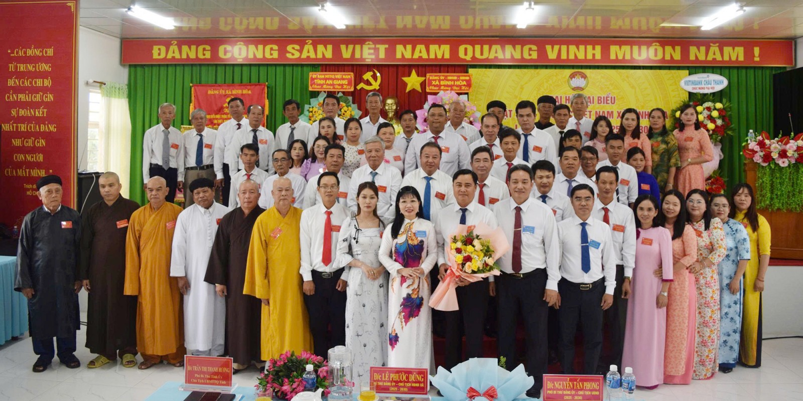 Phó Bí thư Tỉnh ủy, Trưởng đoàn Đại biểu Quốc hội tỉnh, Chủ tịch Ủy ban MTTQ Việt Nam tỉnh An Giang Trần Thị Thanh Hương tặng hoa chúc mừng các Ủy viên Ủy ban MTTQ Việt Nam xã Bình Hòa khóa I, nhiệm kỳ 2025 - 2030.