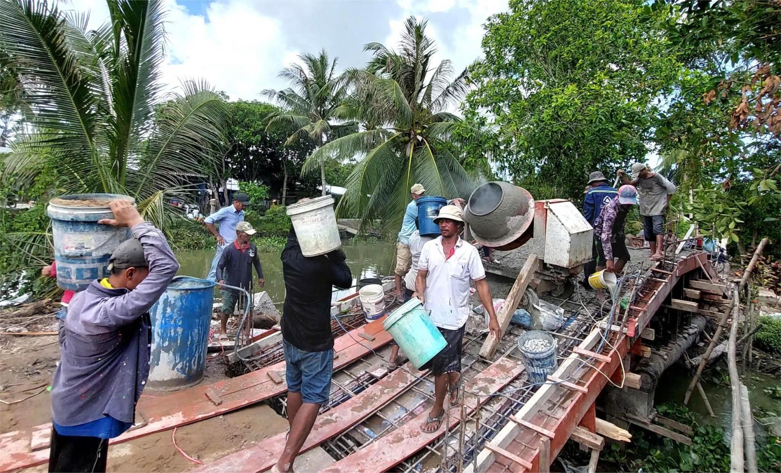 Người dân xã Tây Yên góp ngày công xây dựng cầu giao thông nông thôn.