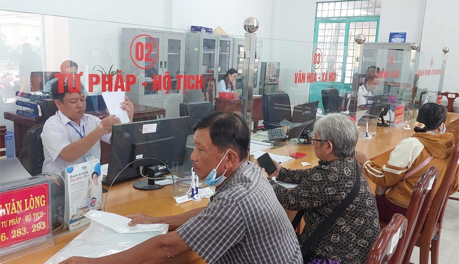 Người dân làm thủ tục hồ sơ tại Trung tâm Phục vụ hành chính công xã Tây Yên.