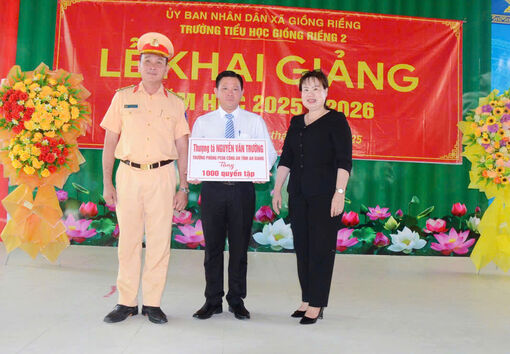 Dịp này, Đoàn cơ sở Phòng Cảnh sát giao thông trao tặng 3.300 quyển tập, 25 suất học bổng (300.000 đồng/suất), 50 mũ bảo hiểm và áo mưa cho học sinh các trường. Tổng kinh phí khoảng 32 triệu đồng từ nguồn kinh phí của đơn vị và vận động hỗ trợ.