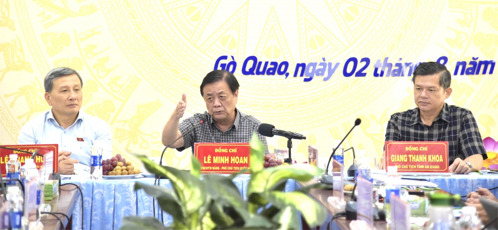 Phó Chủ tịch Quốc hội Lê Minh Hoan phát biểu chỉ đạo trong buổi làm việc tại xã Gò Quao.