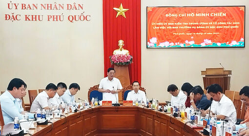 Phát biểu kết luận buổi làm việc, đồng chí Hồ Minh Chiến, Ủy viên Ủy ban Kiểm tra Trung ương, trưởng đoàn công tác đánh giá cao những kết quả đặc khu Phú Quốc đạt được. Từ khi thực hiện chính quyền hai cấp, Phú Quốc đã có nhiều giải pháp khắc phục khó khăn, vướng mắc để vận hành bộ máy đáp ứng yêu cầu nhiệm vụ được giao.