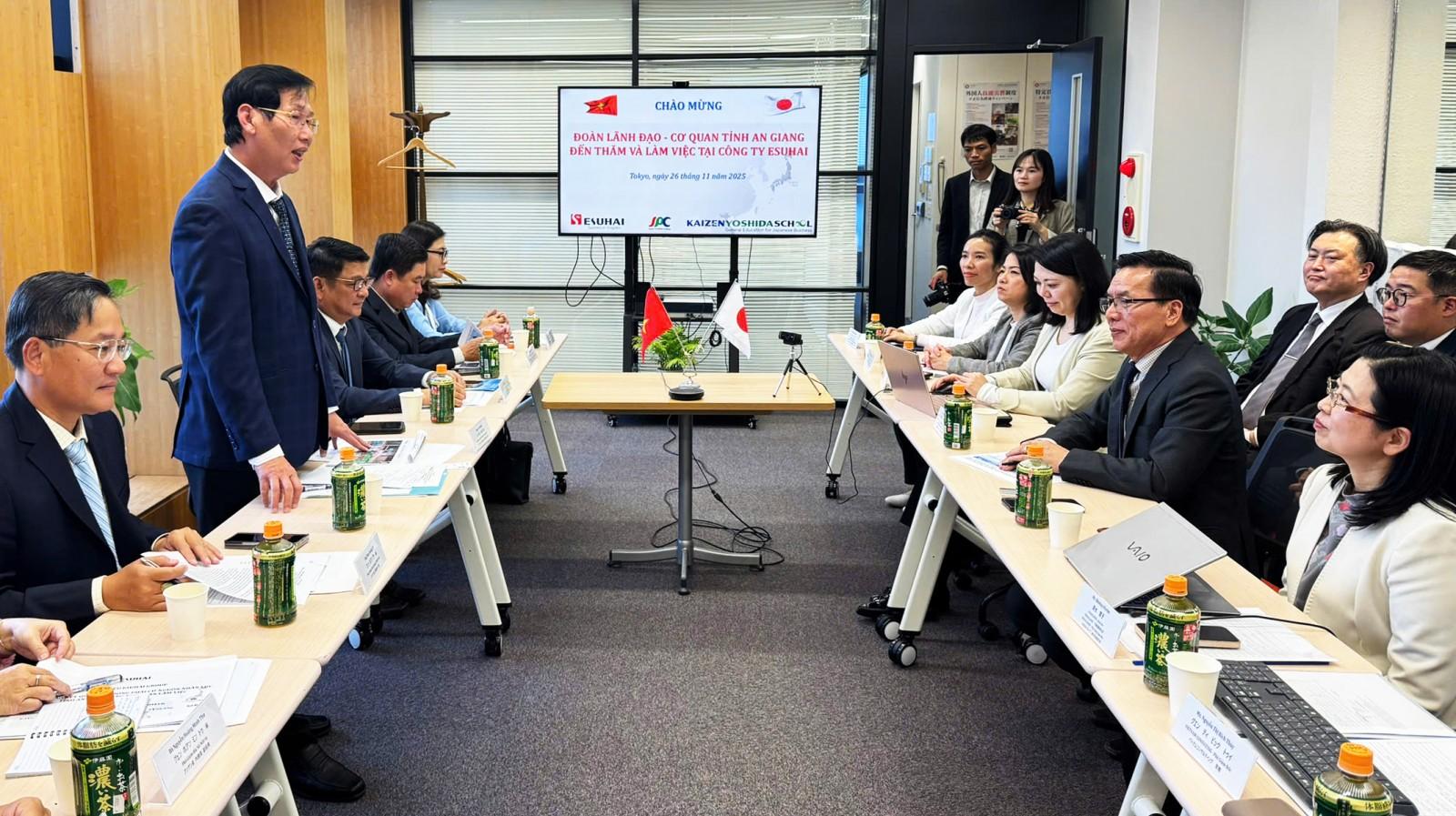 Trong khuôn khổ chuyến thăm và làm việc tại Nhật Bản, chiều 26/11, tại Tokyo, đoàn công tác tỉnh An Giang do Phó Chủ tịch UBND tỉnh An Giang Lê Văn Phước làm trưởng đoàn đến thăm và làm việc với Công ty TNHH Esuhai về hợp tác đào tạo và phái cử lao động tỉnh An Giang sang làm việc tại Nhật Bản.