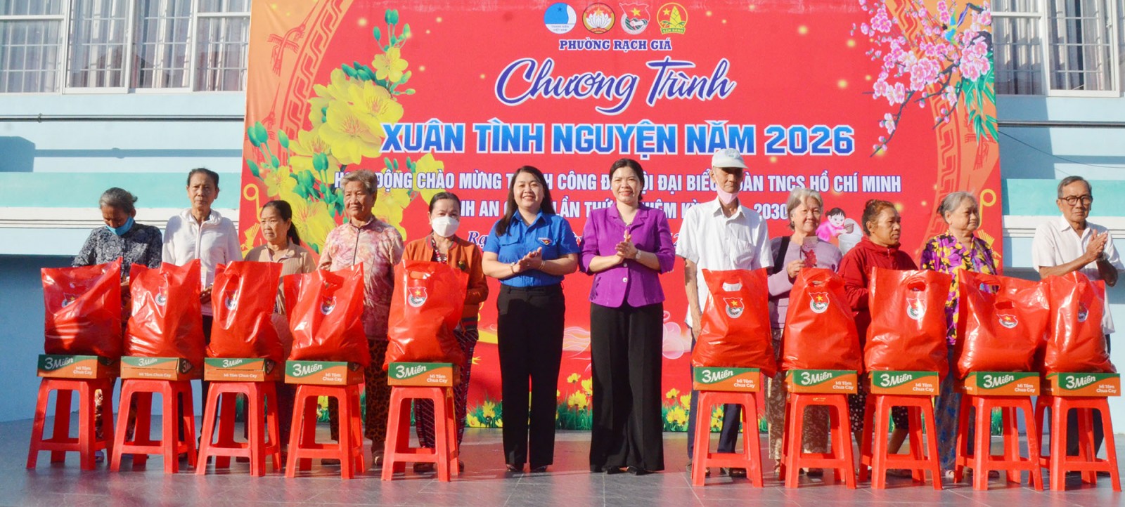 Tại lễ phát động, Đoàn phường Rạch Giá tặng 95 suất quà cho hộ nghèo, có hoàn cảnh khó khăn trên địa bàn, trị giá 500.000 đồng/suất; khám bệnh, cấp thuốc và cắt tóc miễn phí cho người dân…