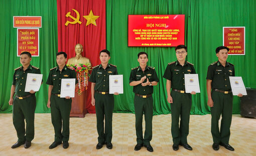 Thừa ủy quyền của Bộ Tư lệnh Bộ đội Biên phòng và Ban Chỉ huy Bộ đội Biên phòng tỉnh An Giang, đơn vị đã công bố và trao quyết định nâng bậc lương, thăng quân hàm cho 11 đồng chí quân nhân chuyên nghiệp đang công tác tại Đồn Biên phòng Lạc Quới