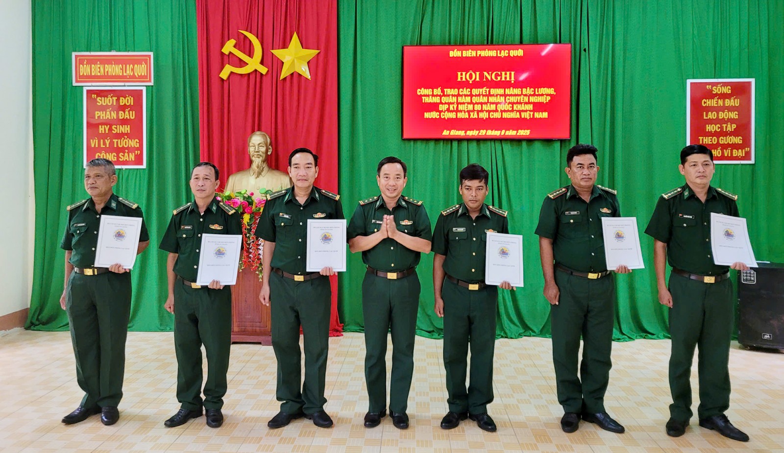 - Chiều 29/9, Đồn Biên phòng Lạc Quới tổ chức hội nghị công bố và trao quyết định nâng bậc lương, thăng quân hàm quân nhân chuyên nghiệp.