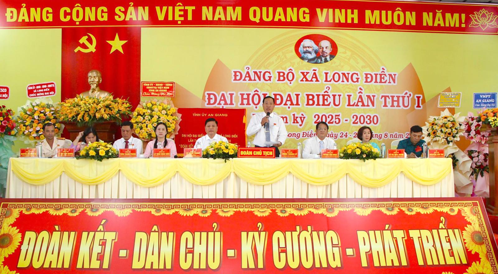 Ngày 24 và 25/8, Đảng bộ xã Long Điền (tỉnh An Giang) tổ chức Đại hội đại biểu lần thứ I, nhiệm kỳ 2025 - 2030. Ủy viên Ban Thường vụ Tỉnh ủy, Phó Chủ tịch Thường trực UBND tỉnh An Giang Nguyễn Thanh Phong đến dự và chỉ đạo đại hội.