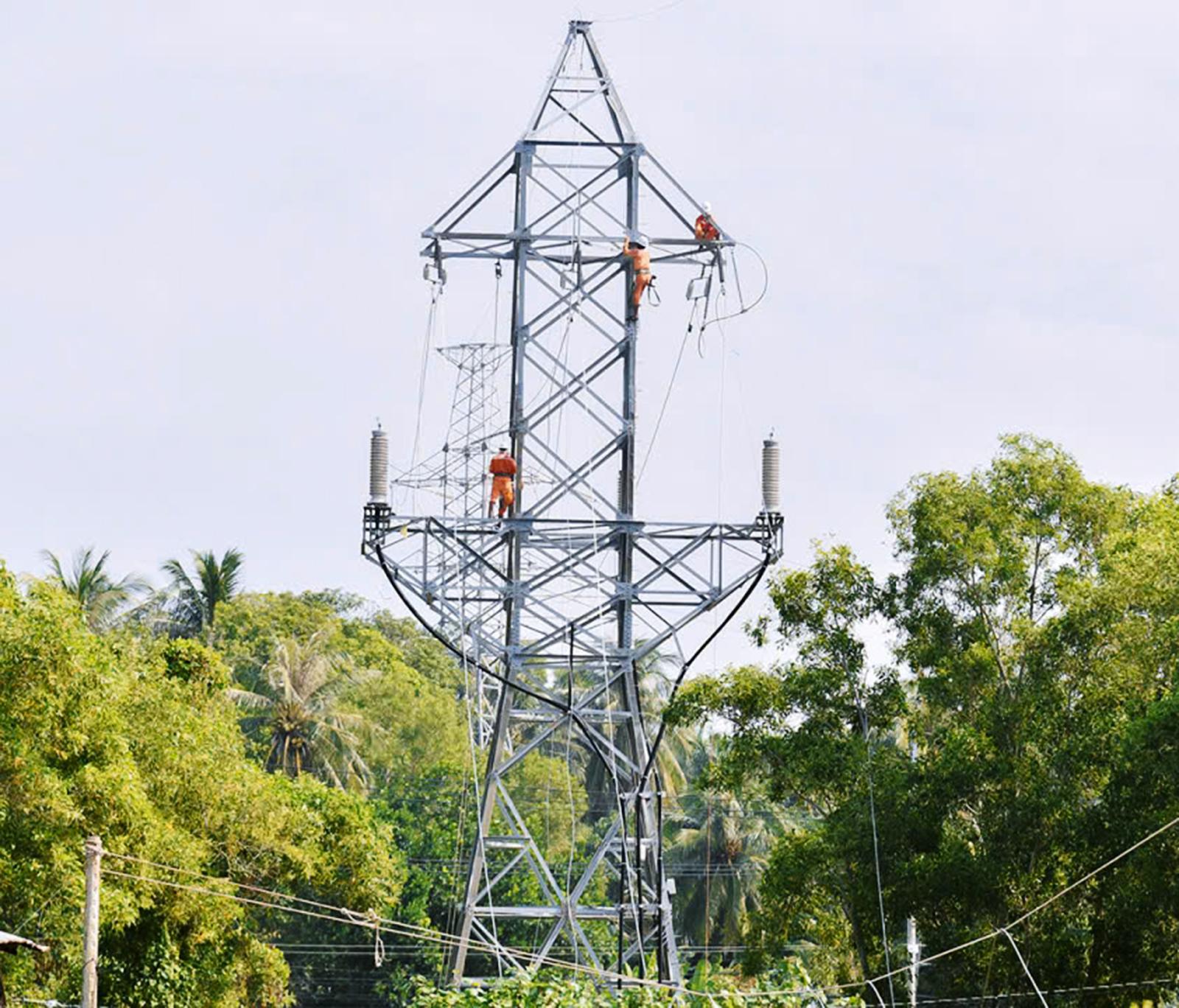 Hiện trường khắc phục sự cố. Ảnh: Công ty Điện lực An Giang.
