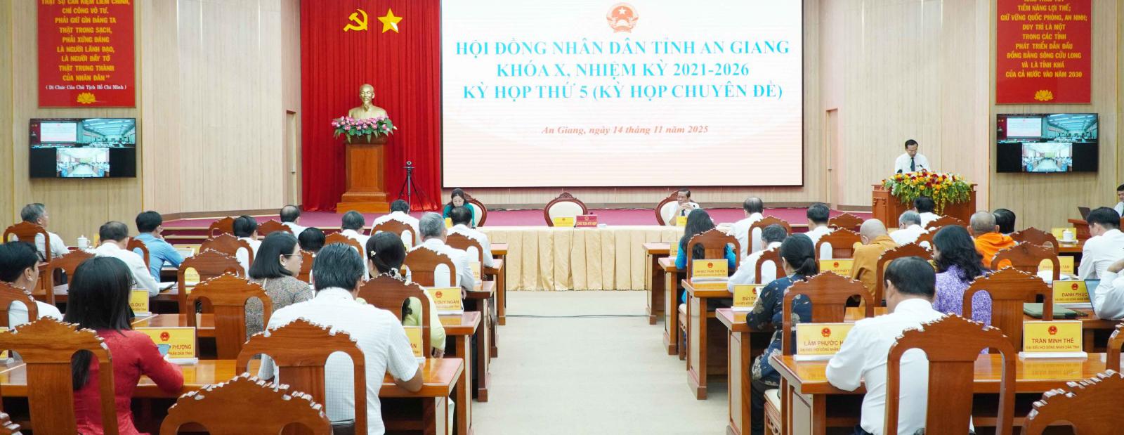 Kỳ họp được tổ chức theo hình thức trực tiếp kết hợp trực tuyến. Phó Bí thư Thường trực Tỉnh ủy, Chủ tịch HĐND tỉnh An Giang Nguyễn Thanh Nhàn và các Phó Chủ tịch HĐND tỉnh chủ tọa Kỳ họp thứ 5. Phó Bí thư Tỉnh ủy An Giang Lâm Minh Thành tham dự kỳ họp.