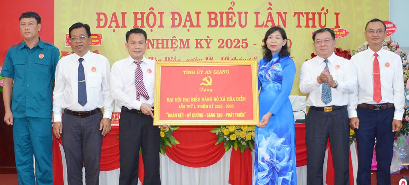 Đại hội đã công bố quyết định của Ban Thường vụ Tỉnh ủy An Giang chỉ định 26 đồng chí tham gia Ban Chấp hành Đảng bộ xã Hòa Điền, nhiệm kỳ 2025 - 2030; 9 đồng chí tham gia Ban Thường vụ Đảng ủy xã. Đồng chí Lê Thanh Hưởng được chỉ định giữ chức Bí thư Đảng ủy xã Hòa Điền, nhiệm kỳ 2025 - 2030.